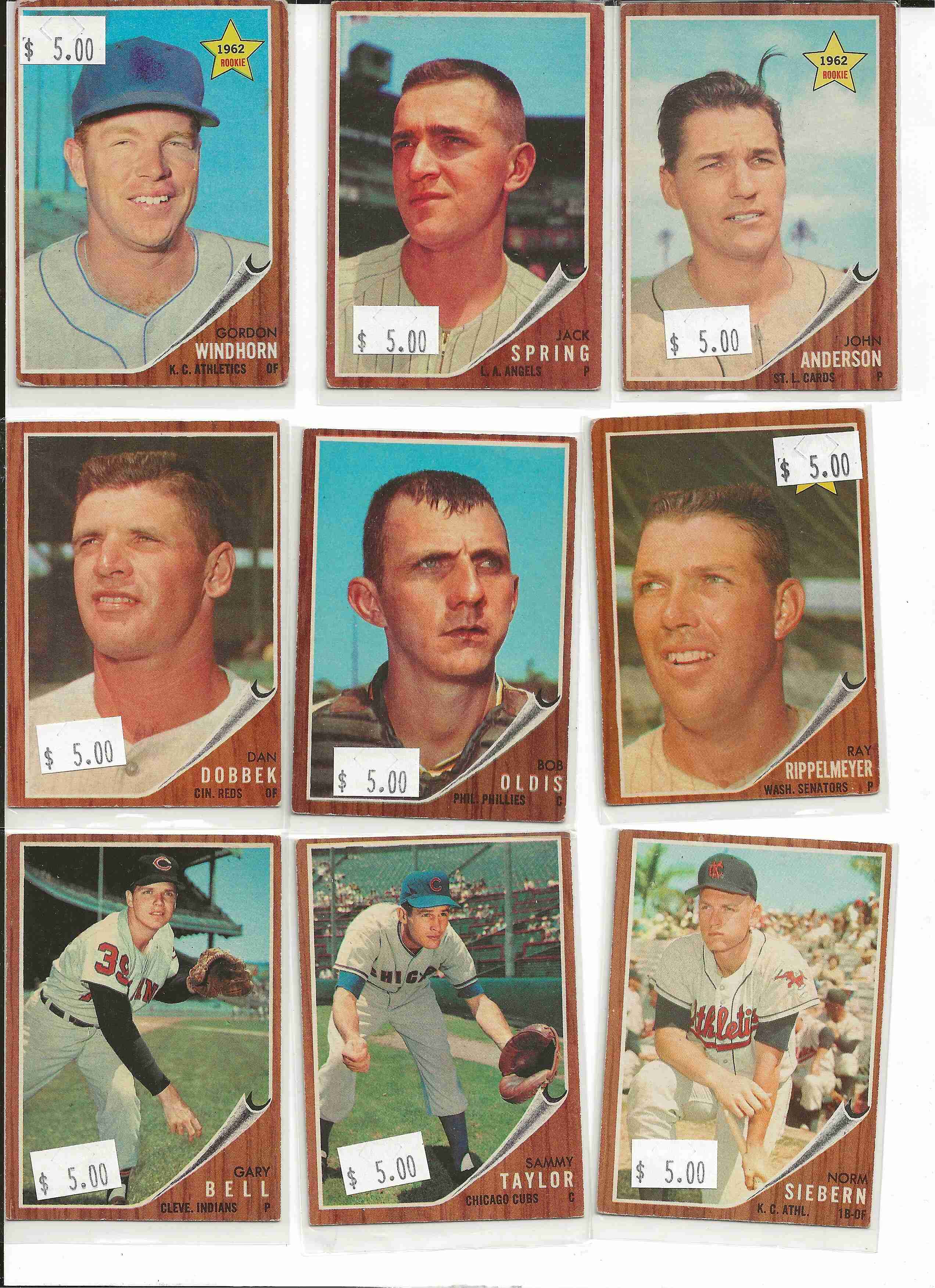 BB 1962 Topps 9-card lot no dups BV $45 EX #254-275