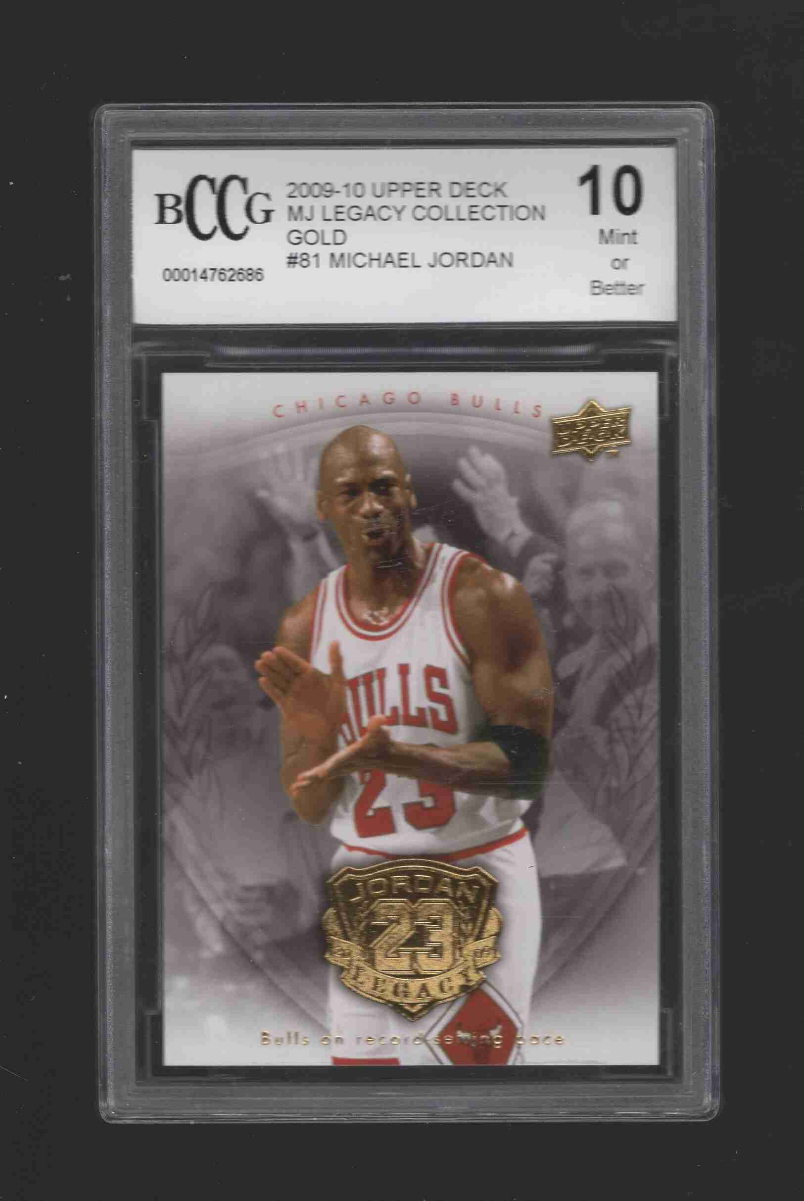 Michael Jordan 2009-10 Upper Deck MJ Legacy Collection Gold #81. Graded BCCG 10. Ships bubble mailer with tracking.