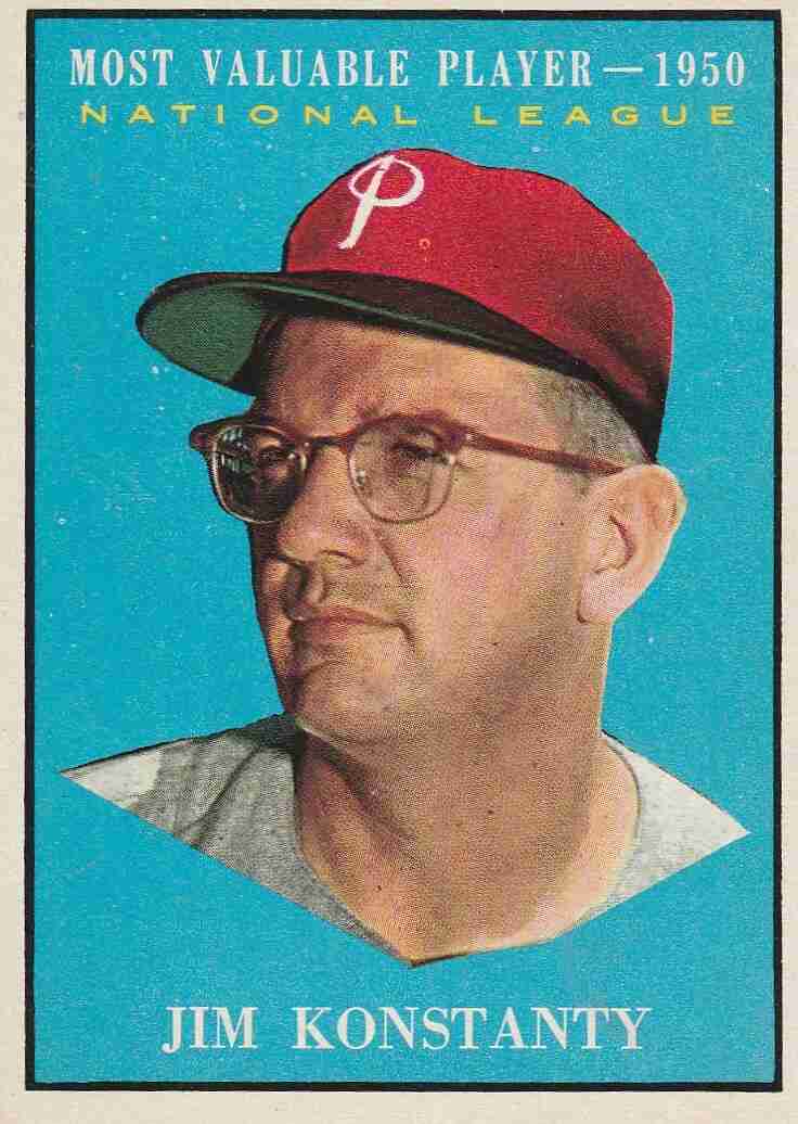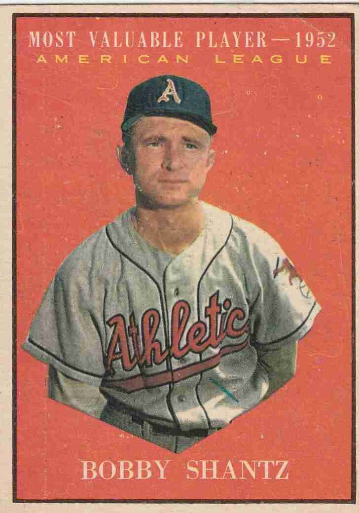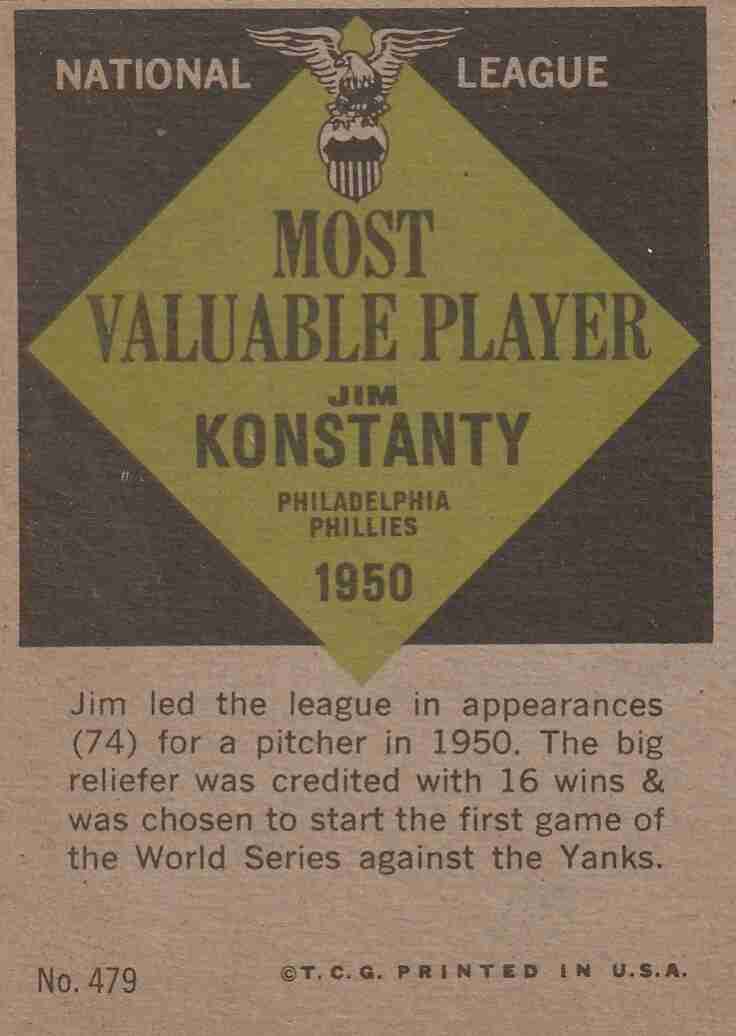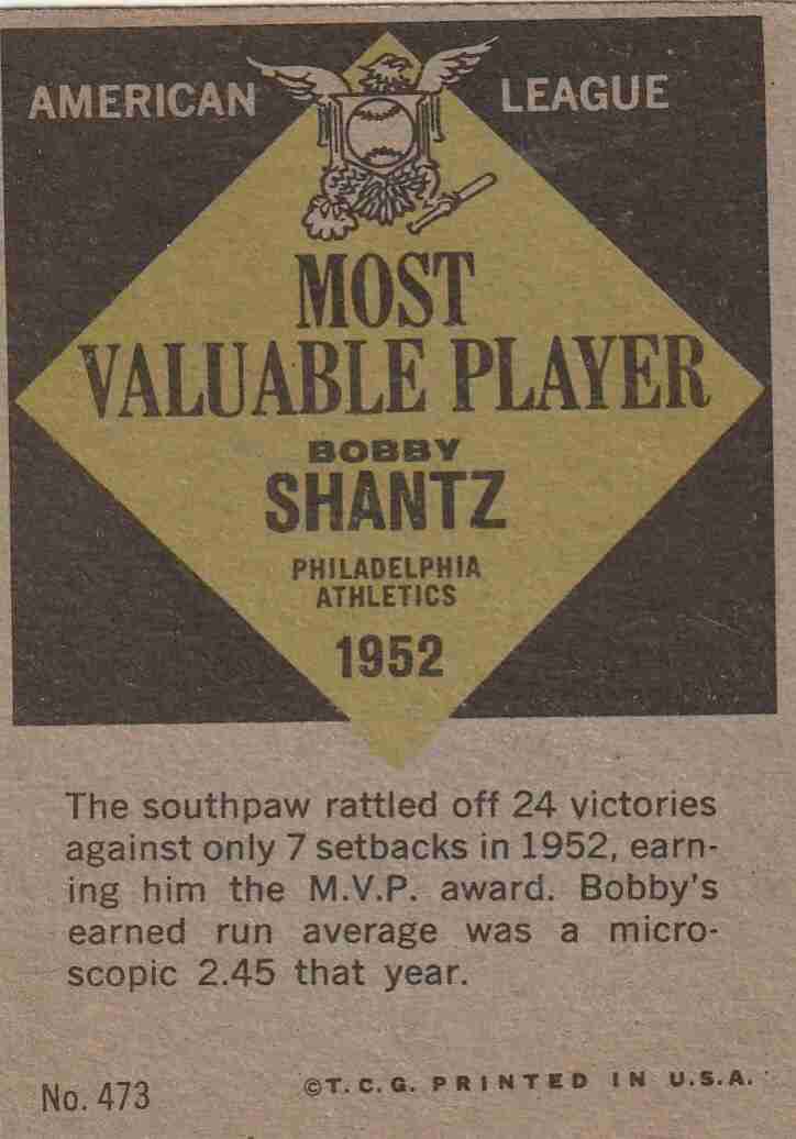 #473 Bobby Shantz '52 AL MVP (EX) upper right corner mild crease #479 Jim Konstanty '50 NL MVP (EX/NM)