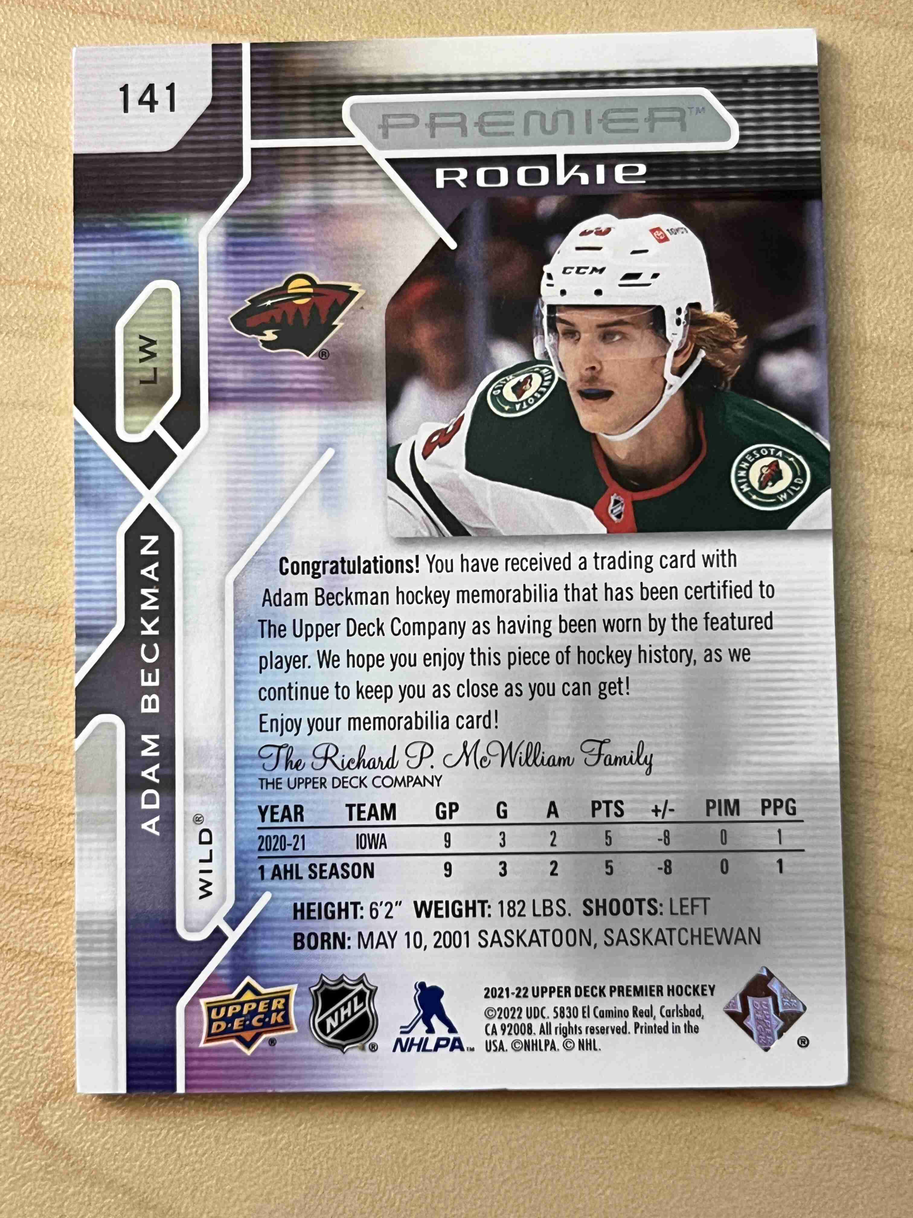 Adam Beckman 2021-22 Premier Rookie Jersey #141