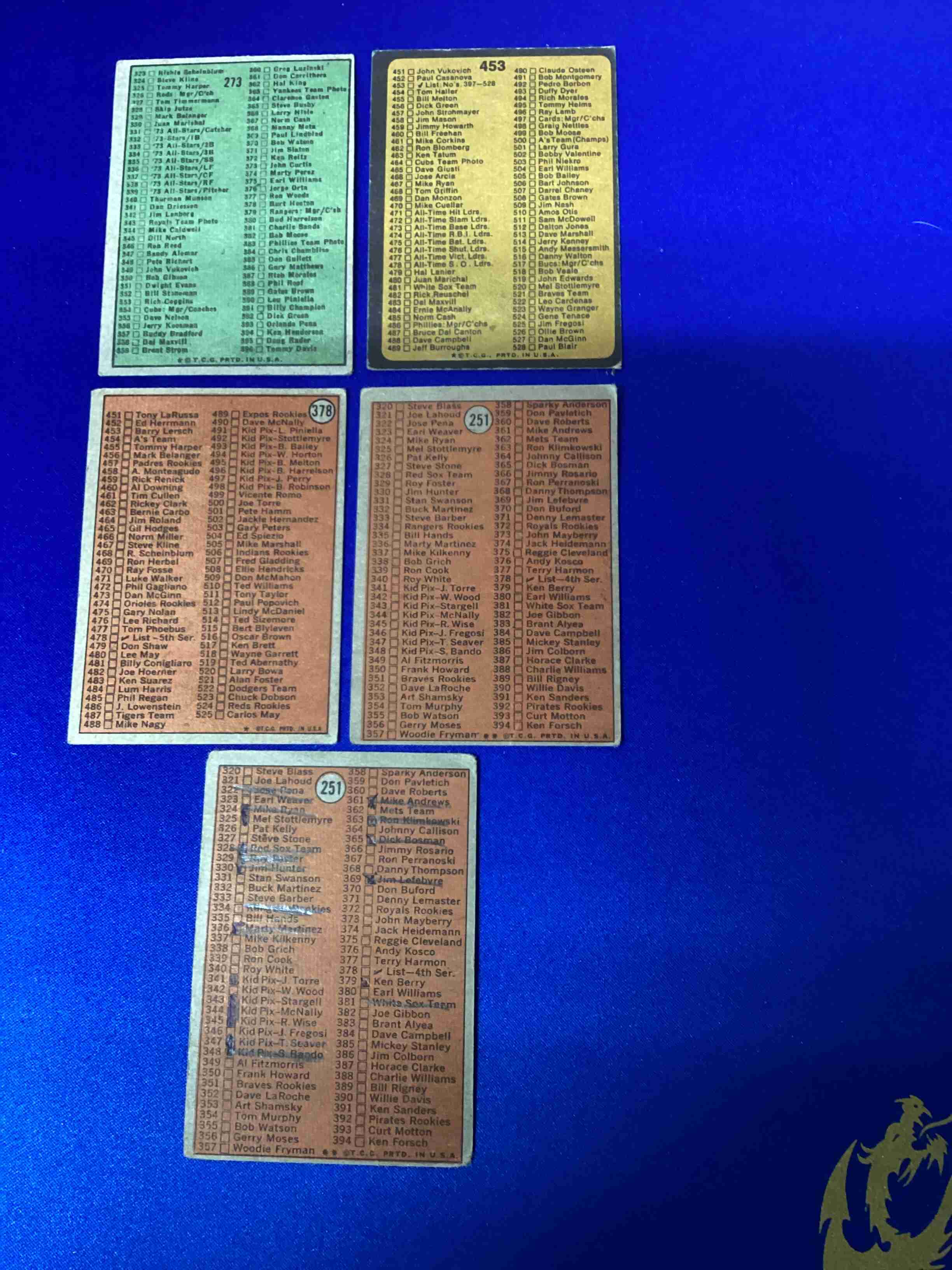 Lot of 5 Vintage Baseball Checklists