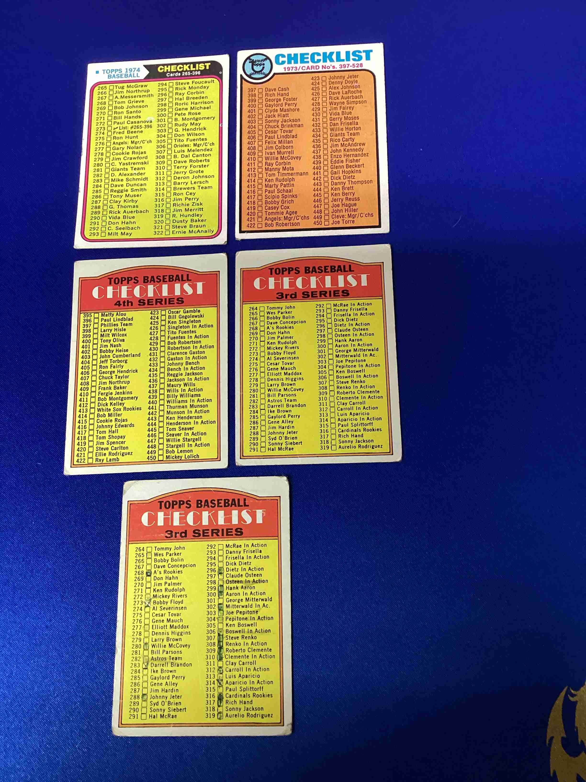 Lot of 5 Vintage Baseball Checklists. 4 are unmarked. Check out my other auctions for more great deals!
