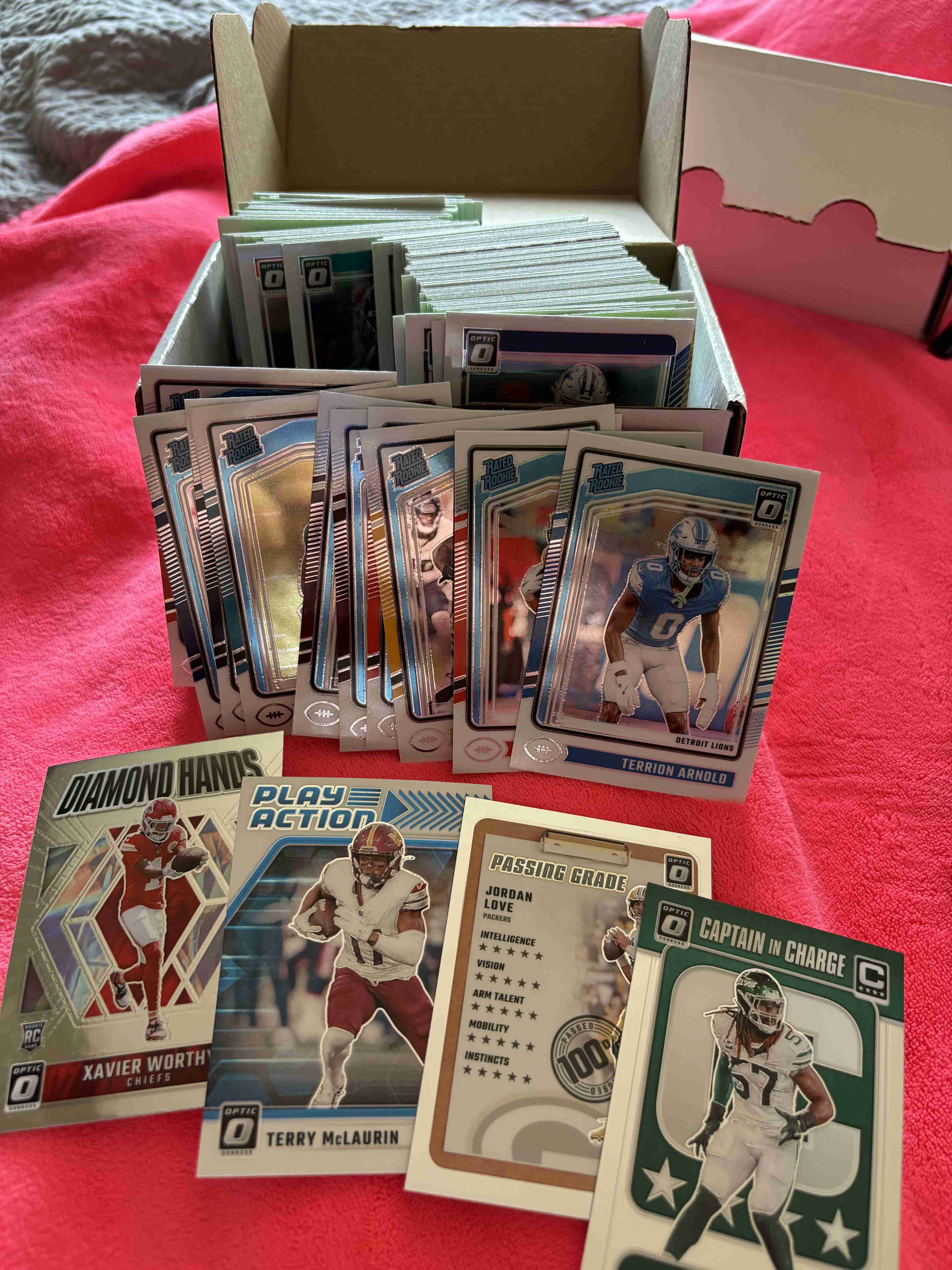 2024 NFL Lot with inserts rookies and stars. Lots include 2024 Prizm, Absolute and Donruss Optic. Can be used as great starter sets too.