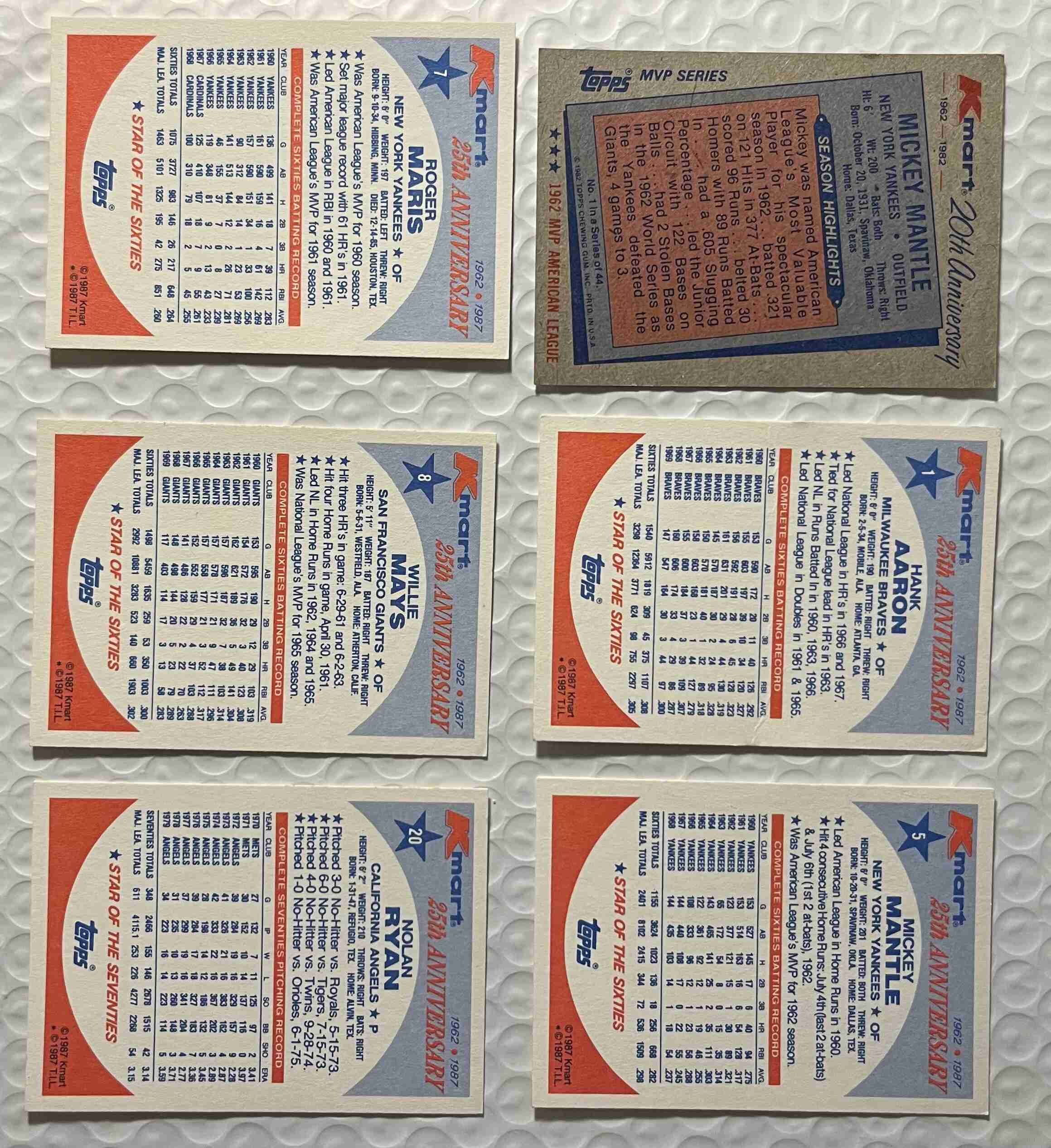 This auction is of ( 6 ) Assorted K-Mart cards. Cards are in Nrmt condition. Look at the pics and judge for yourself. If any questions please feel free to contact me. Thank you for looking at my auctions.