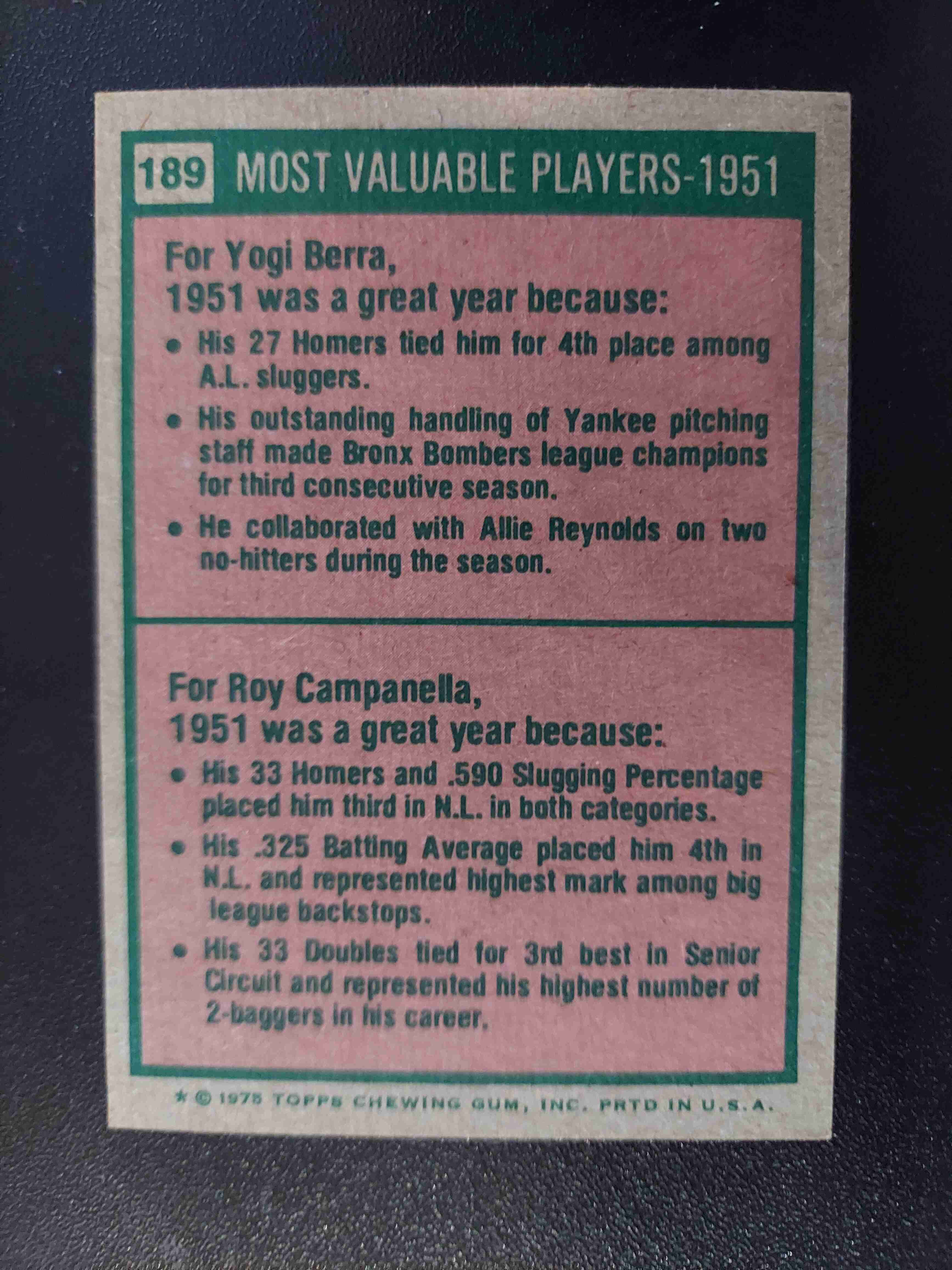1975 TOPPS # 189..1951 MVP'S BERRA/CAMPANELLA