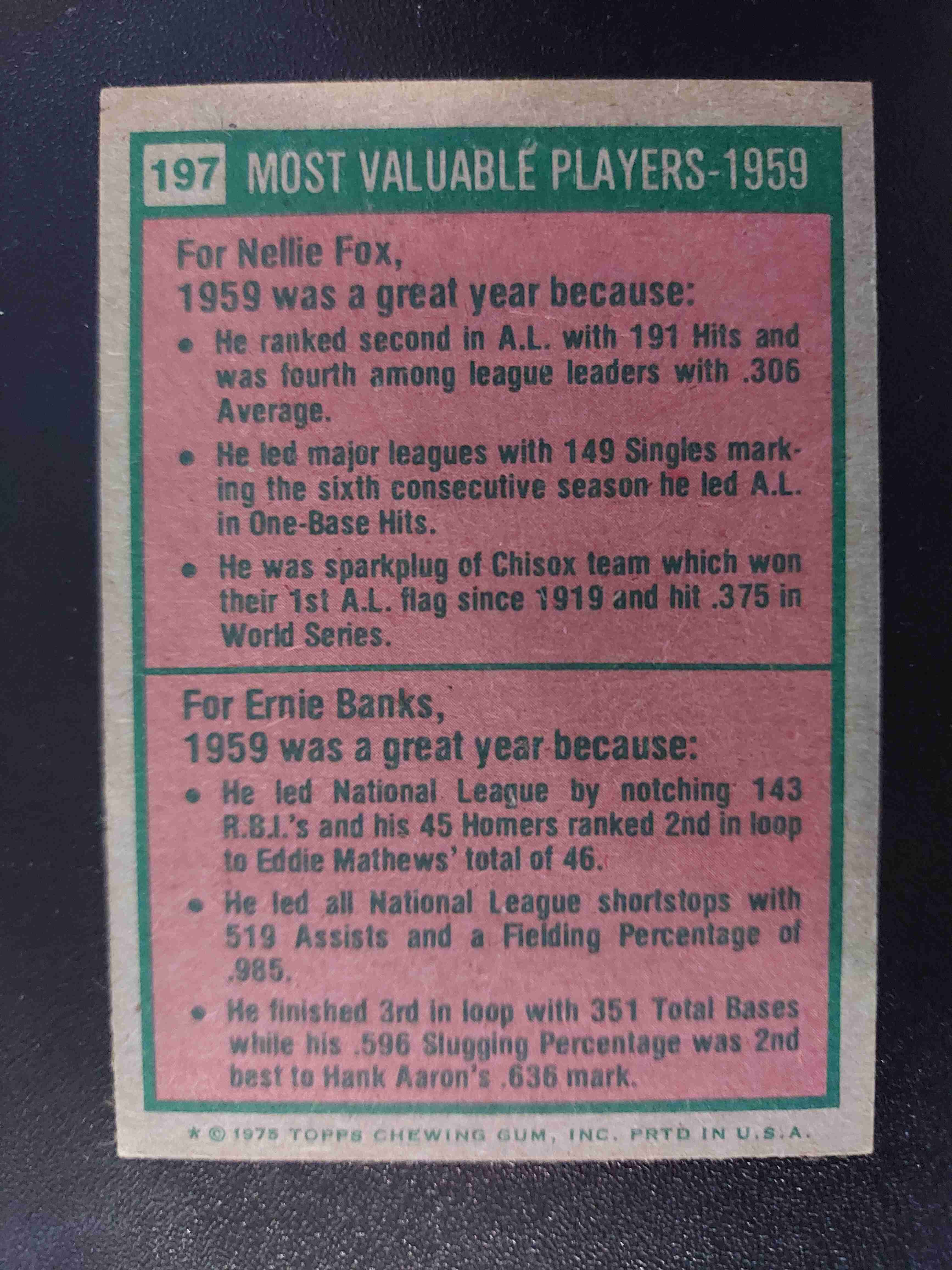 1975 TOPPS # 197..1959 MVP'S BANKS/FOX