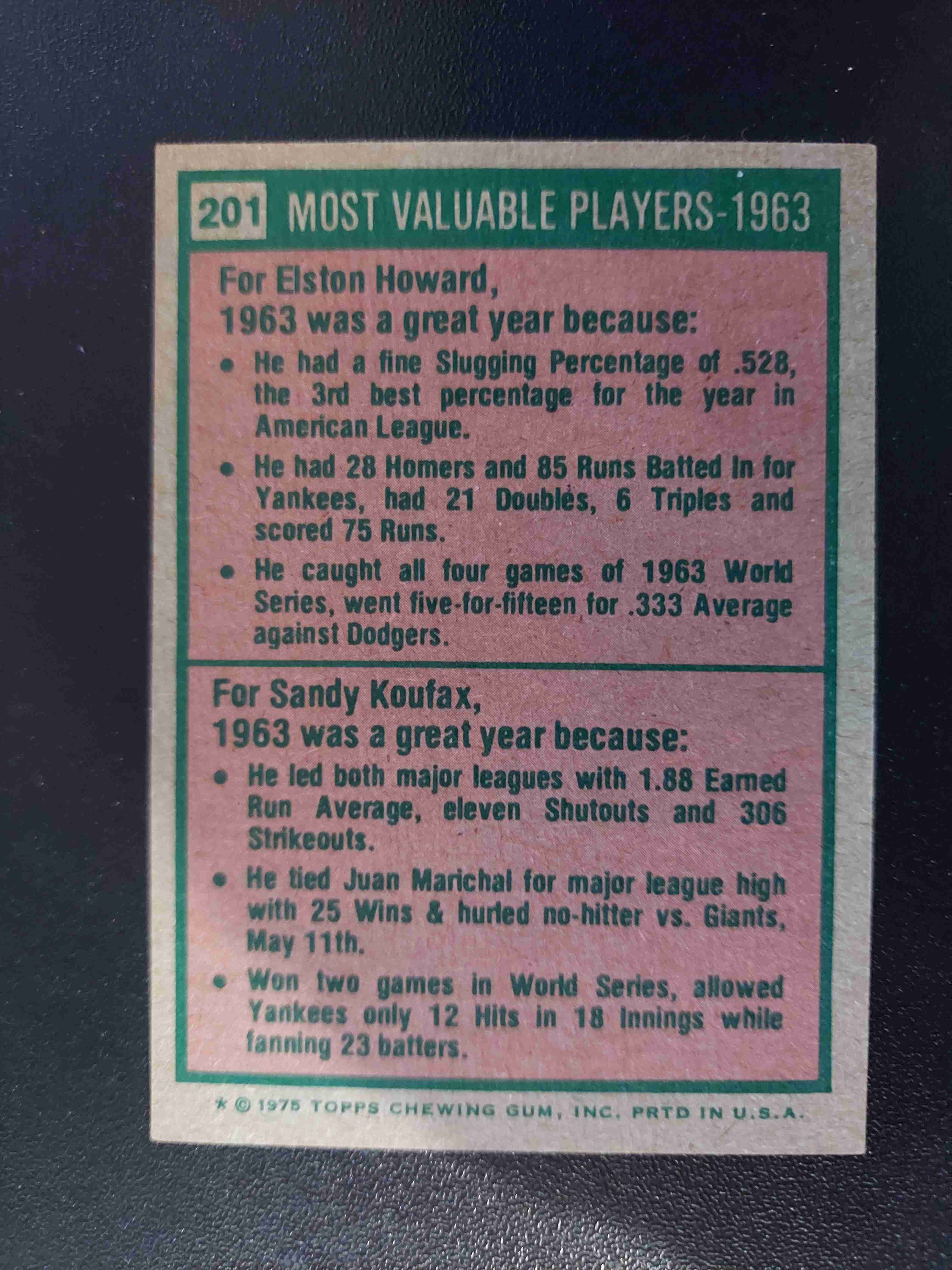 1975 TOPPS # 201..1963 MVP'S HOWARD/KOUFAX