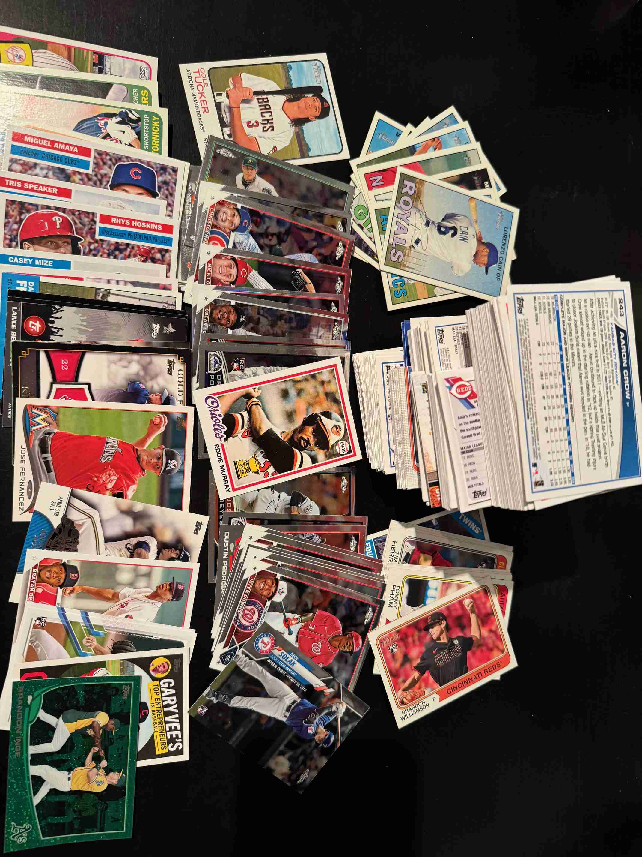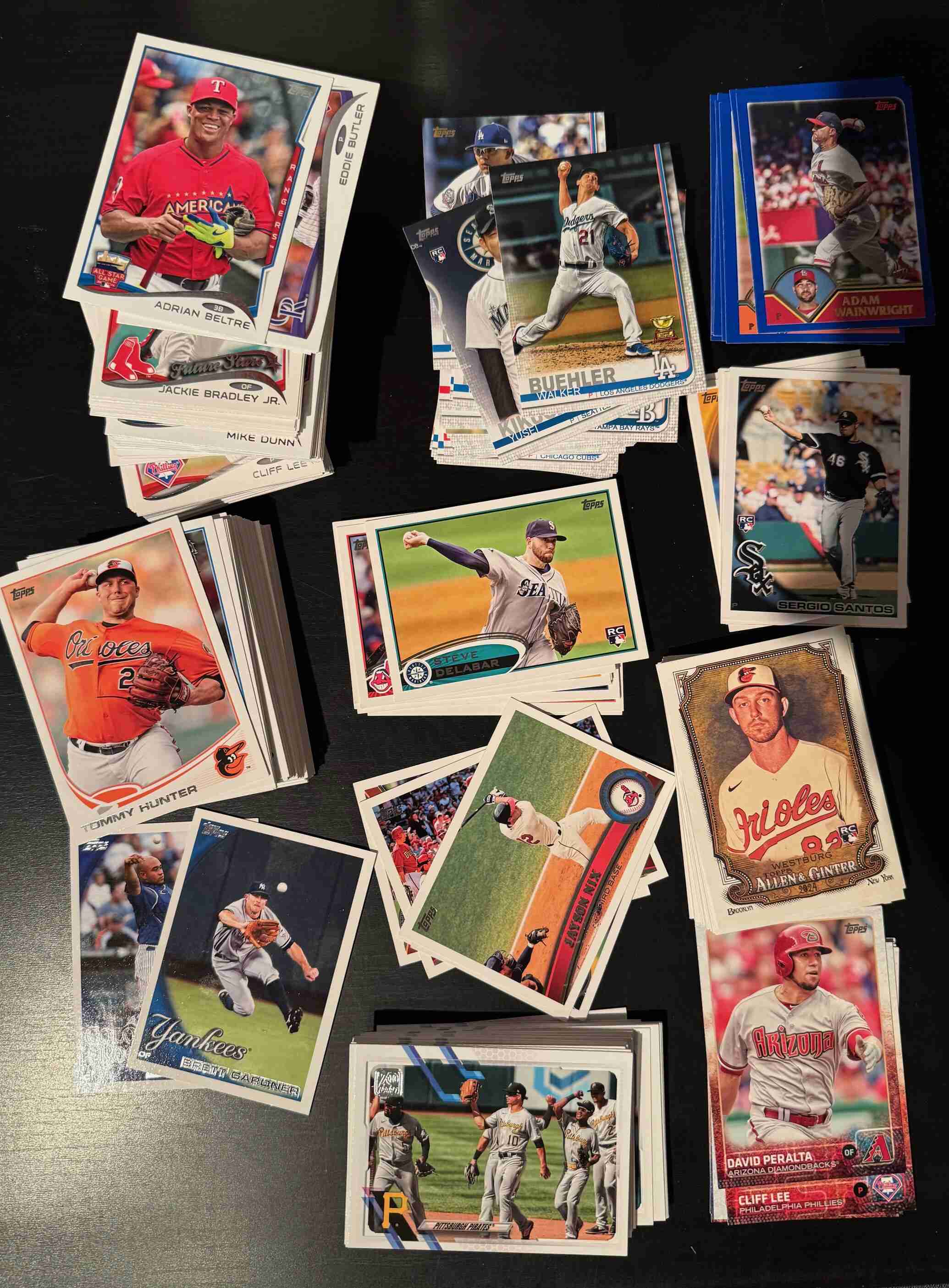 This is a large lot of approximately 300+ Topps baseball cards ranging from 2010 and newer. Cards are from various sets including Topps, Topps Chrome, Allen & Ginter, Topps Archives, Heritage, etc.