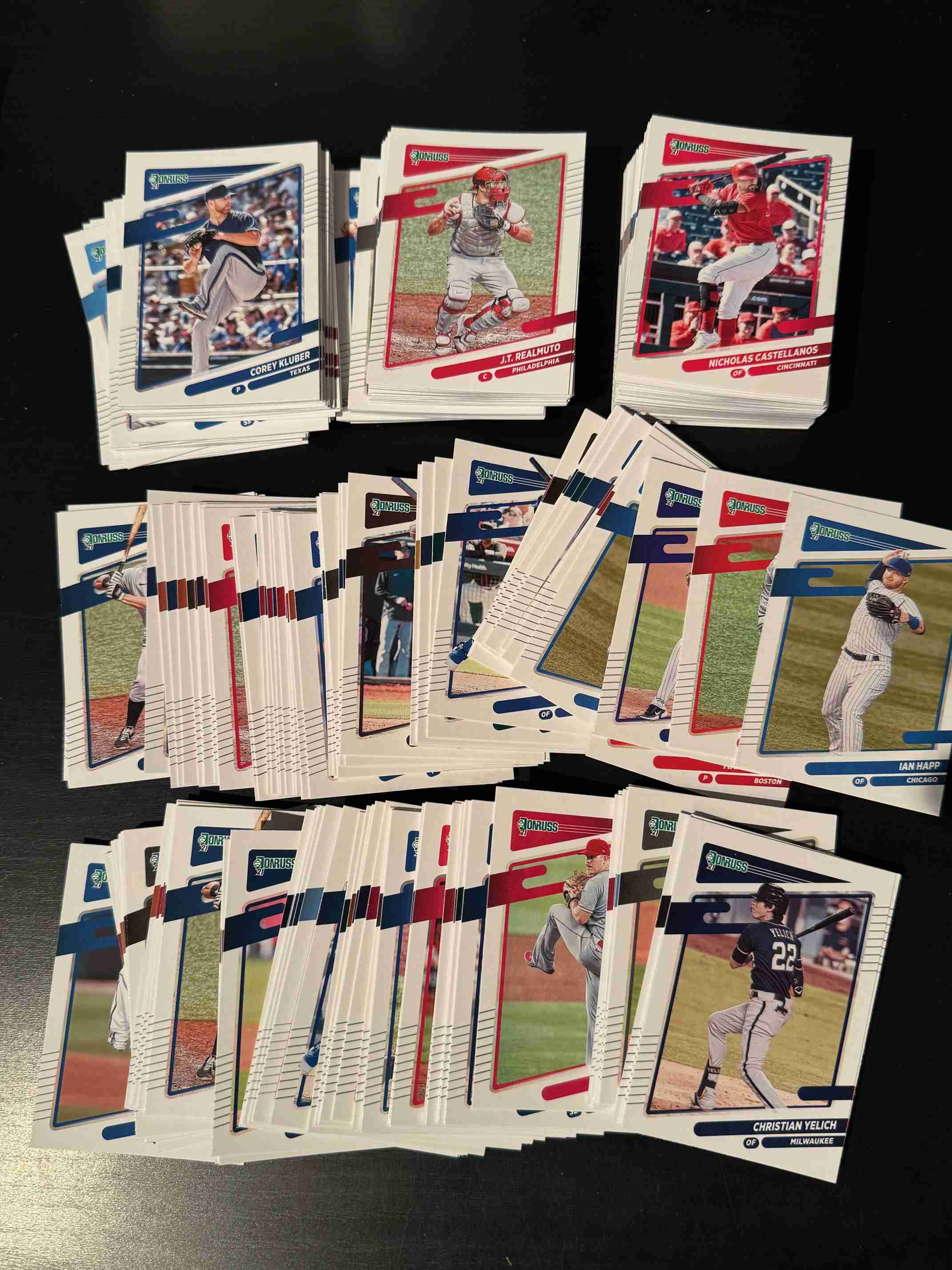 This is a large lot of approximately 300+ Donruss and Panini baseball cards ranging from 2010 and newer. Cards are from various sets including Donruss and Mosiac.