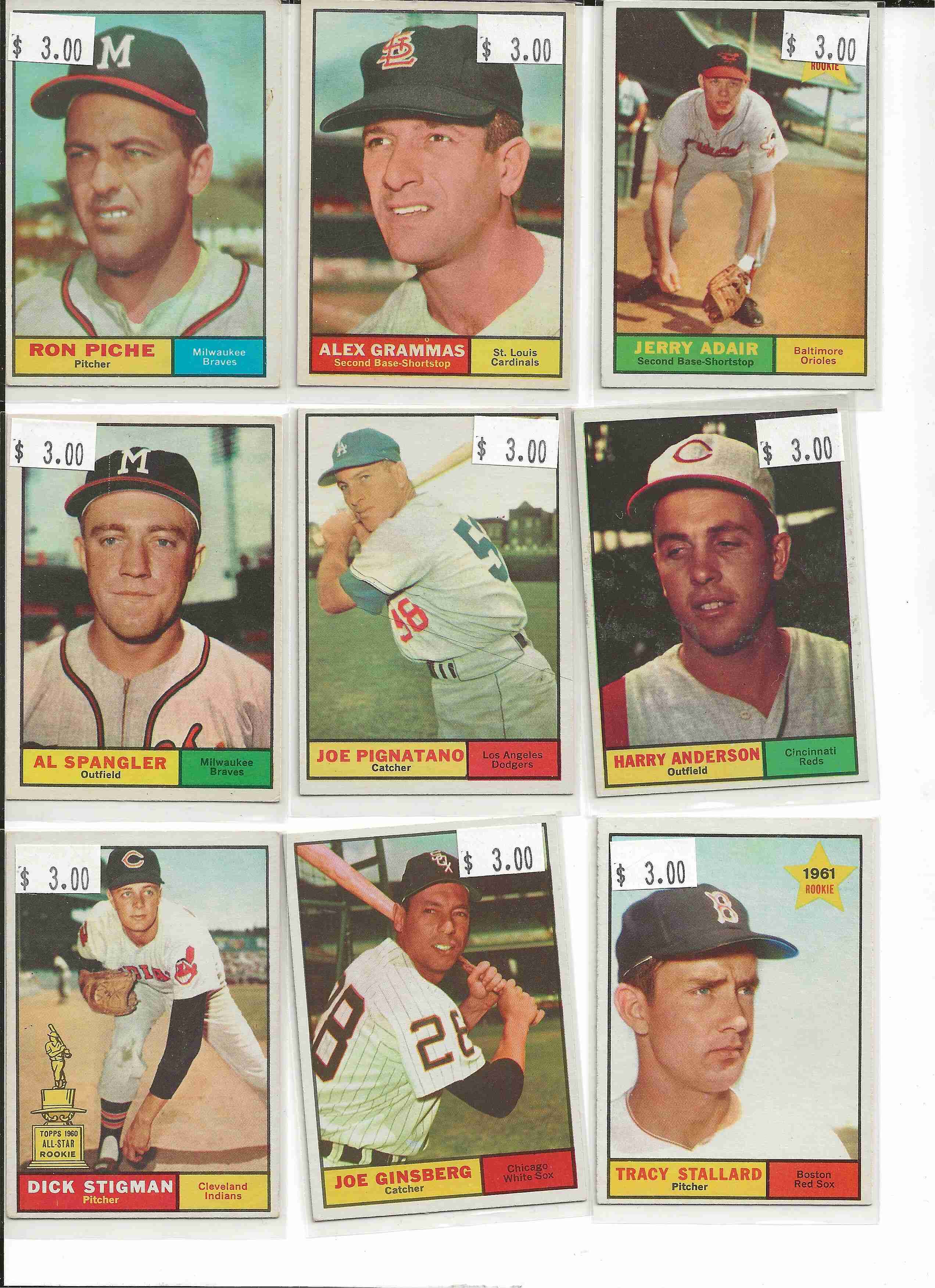 1961 Topps 27-cards book value $108.00. Consider Excellent as I do not grade cards. Cards contain no wax, no creases, no ink. May be OC or soft corners. Not get one duplicate card. Numbers in this lot are #5 23 29 31 34 39 54 59 60 #61 64 71 73 74 76 77 79 81. #8 18 70 75 78 115 117 119 121