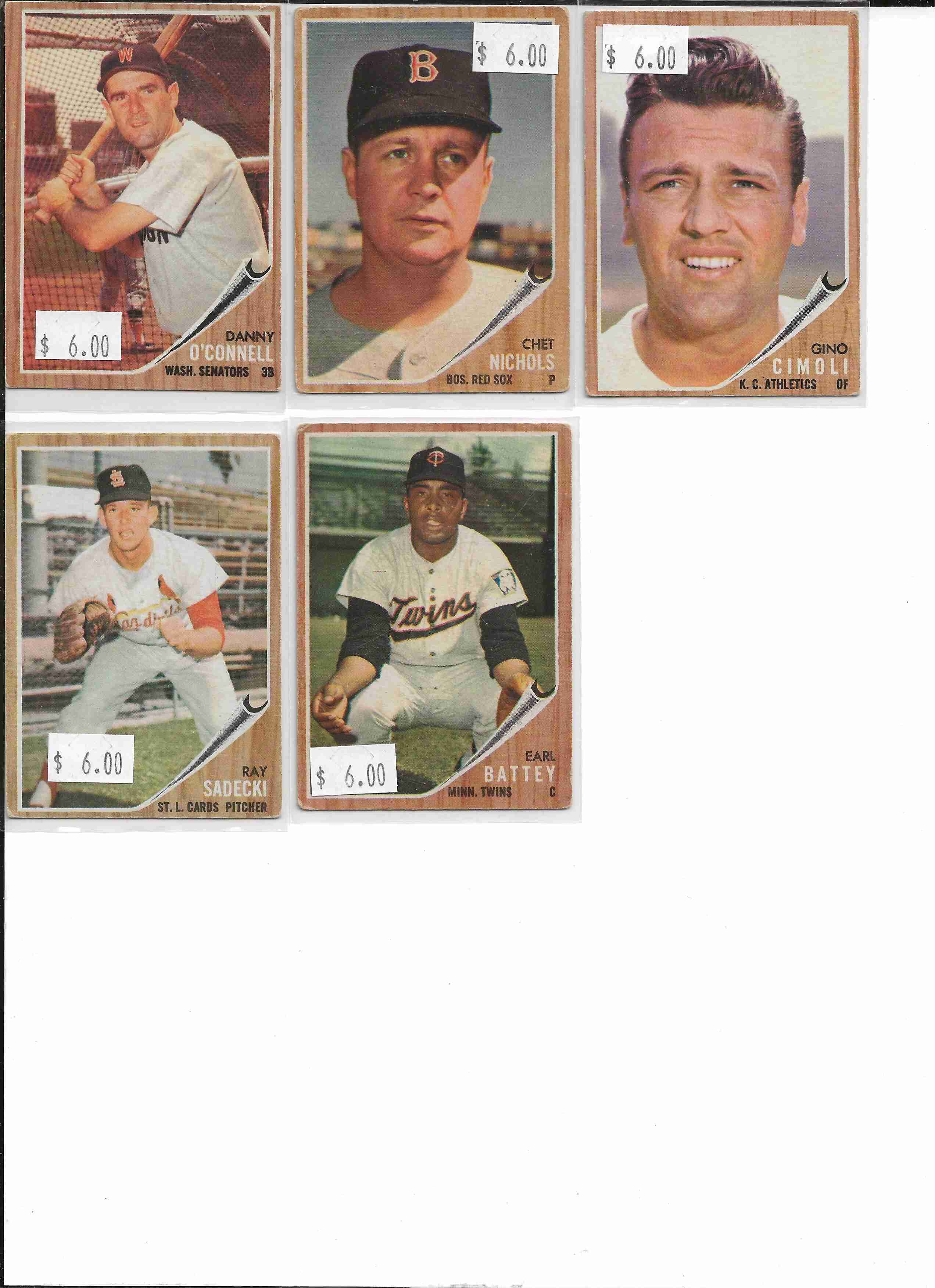 BB 1962 Topps 5-card lot $30.00 #371 -411 $6 each