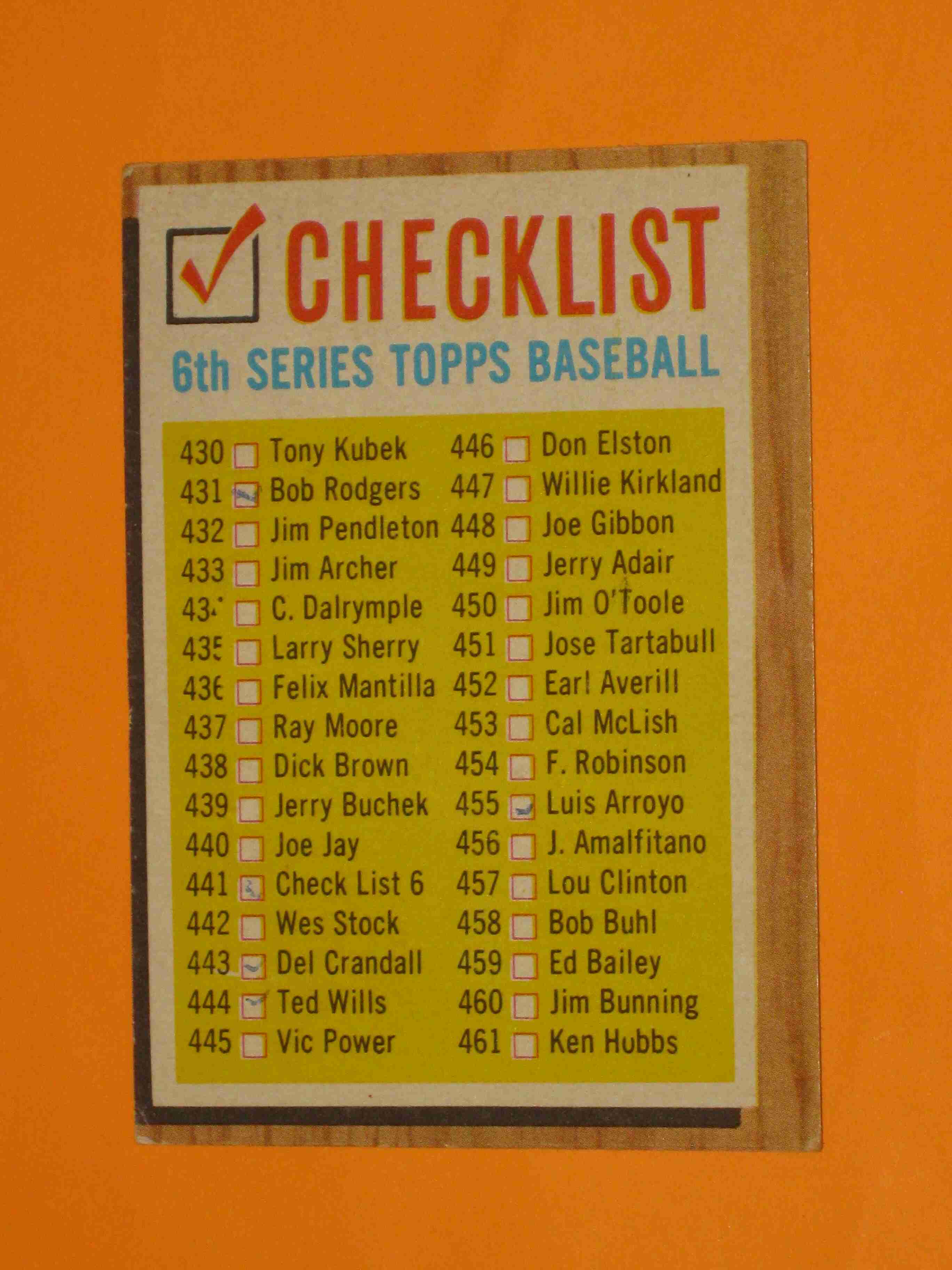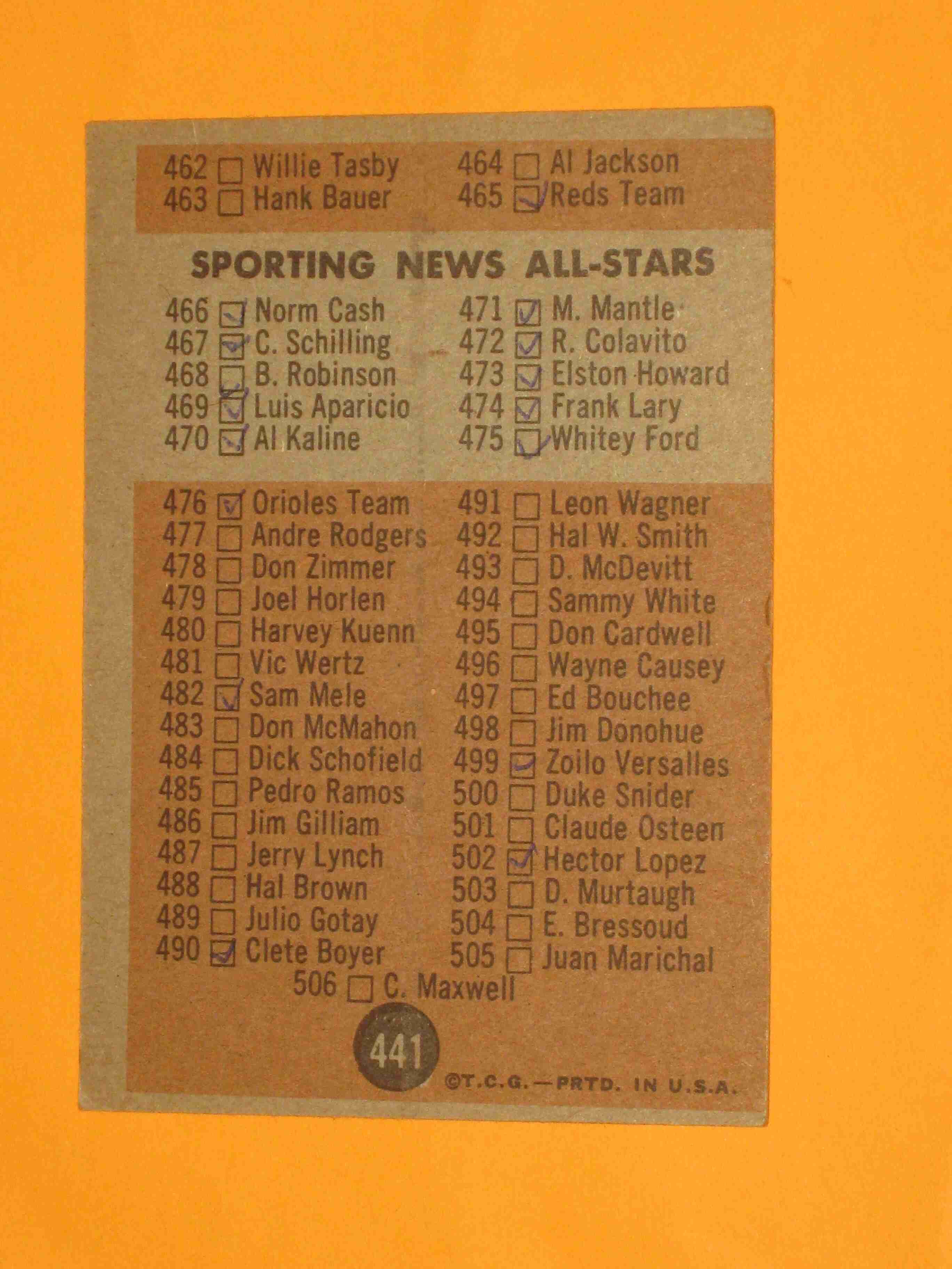 1962 Topps 6th Series Checklist #441 few boxes marked