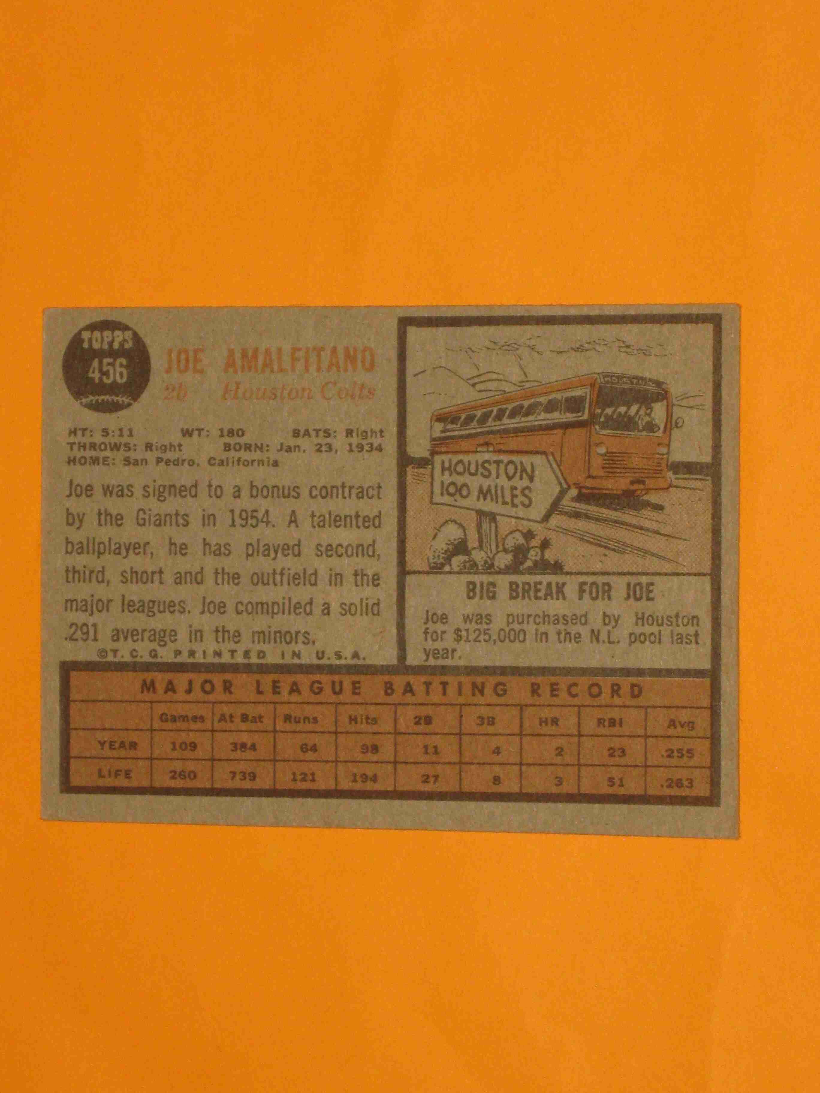 1962 Topps Joe Amalfitano #456 Houston Colt 45's