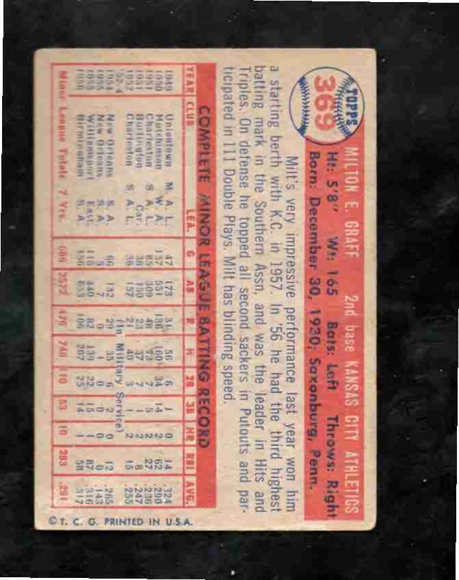 1957 Topps # 369 MILT GRAFF KC A's