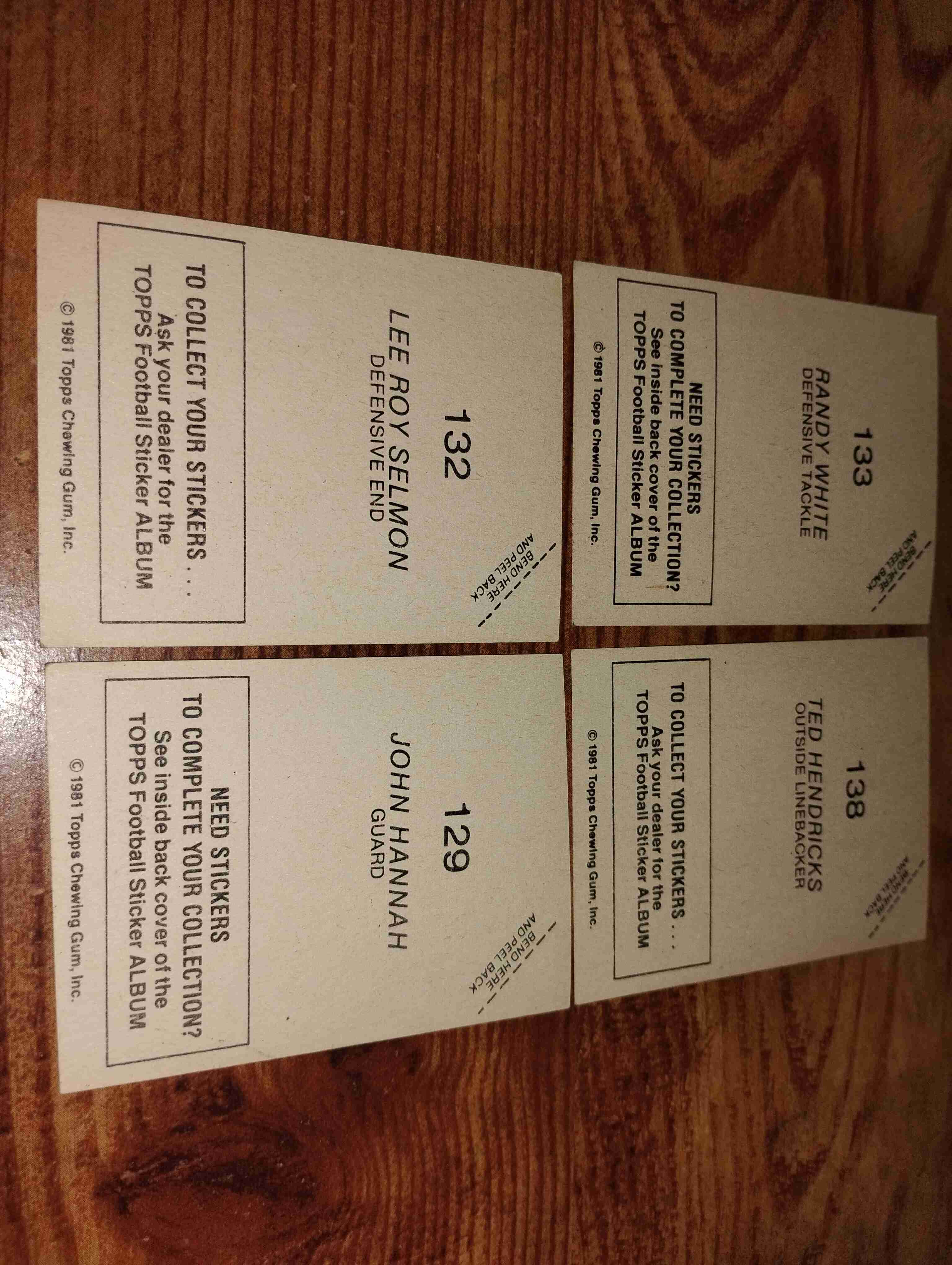 STICKERS ARE PICTURED IN EXCELLENT CONDITION.4 MYSTERY 1981 OR 1982 TOPPS FOOTBALL STICKERS WILL BE ADDED TO THE WINNING BID.WILL BE SHIPPED IN PLASTIC SLEEVE.