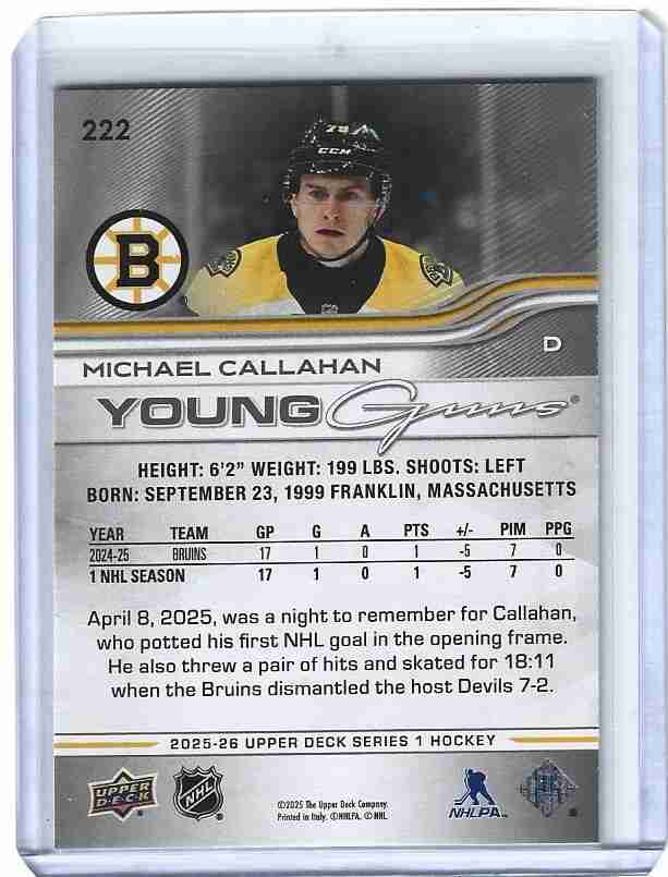 2025/26 UD 1 #222 MICHAEL CALLAHAN YOUNG GUNS