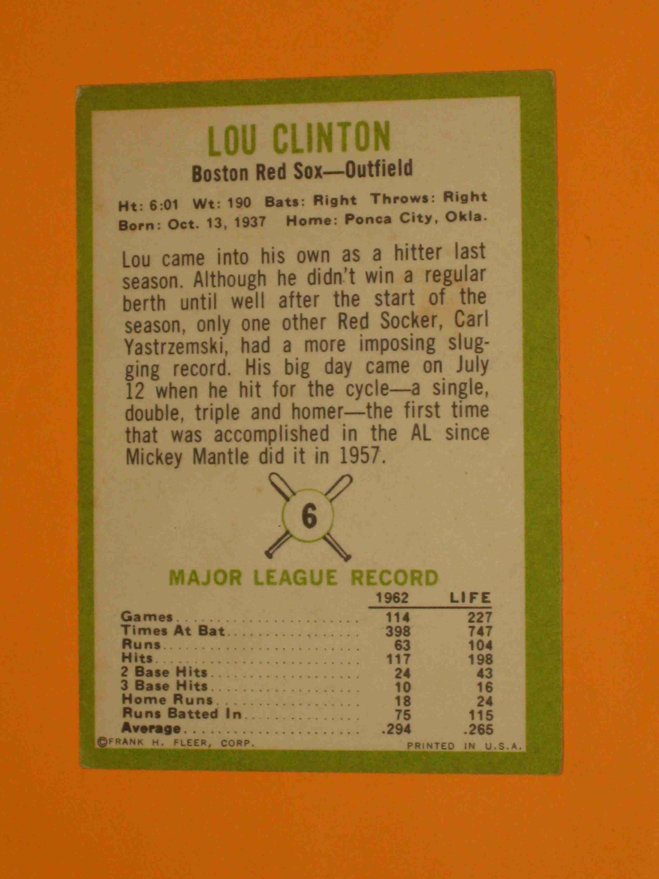 1963 Fleer Lou Clinton #6 Boston Red Sox