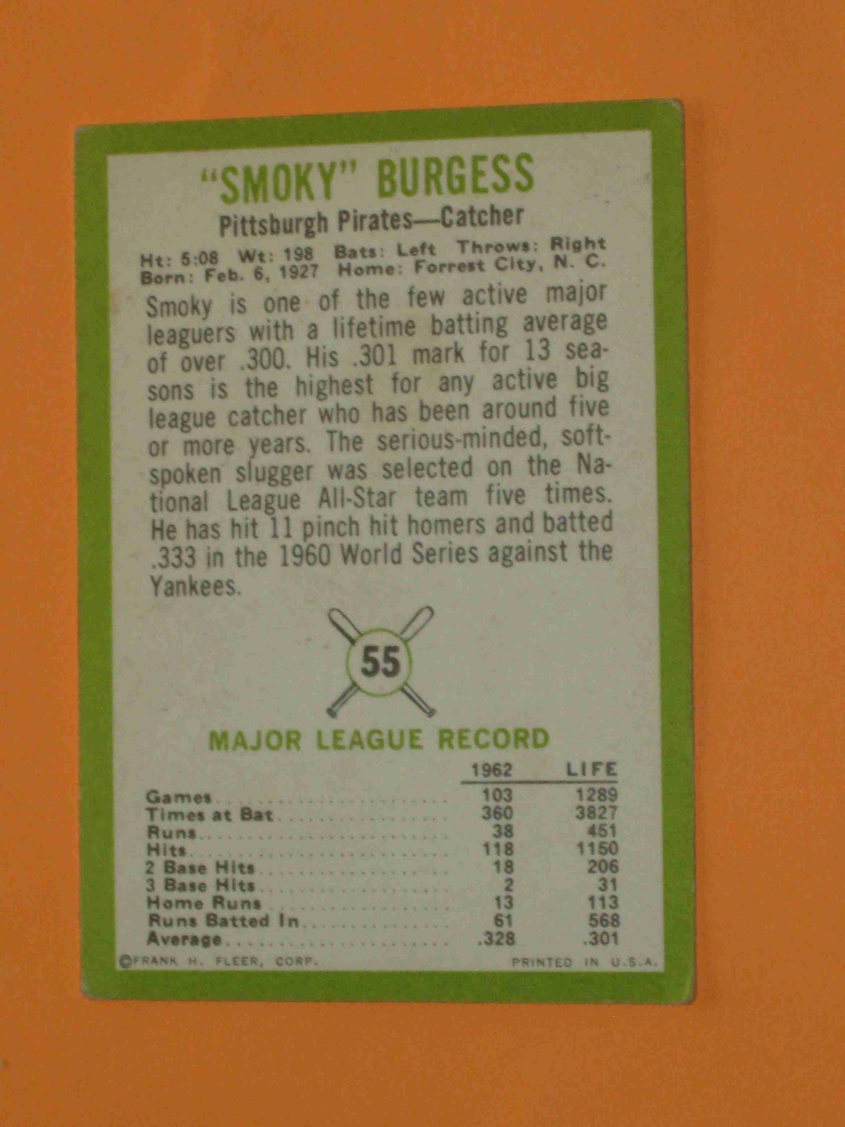 1963 Fleer Smoky Burgess #55 Pittsburgh Pirates