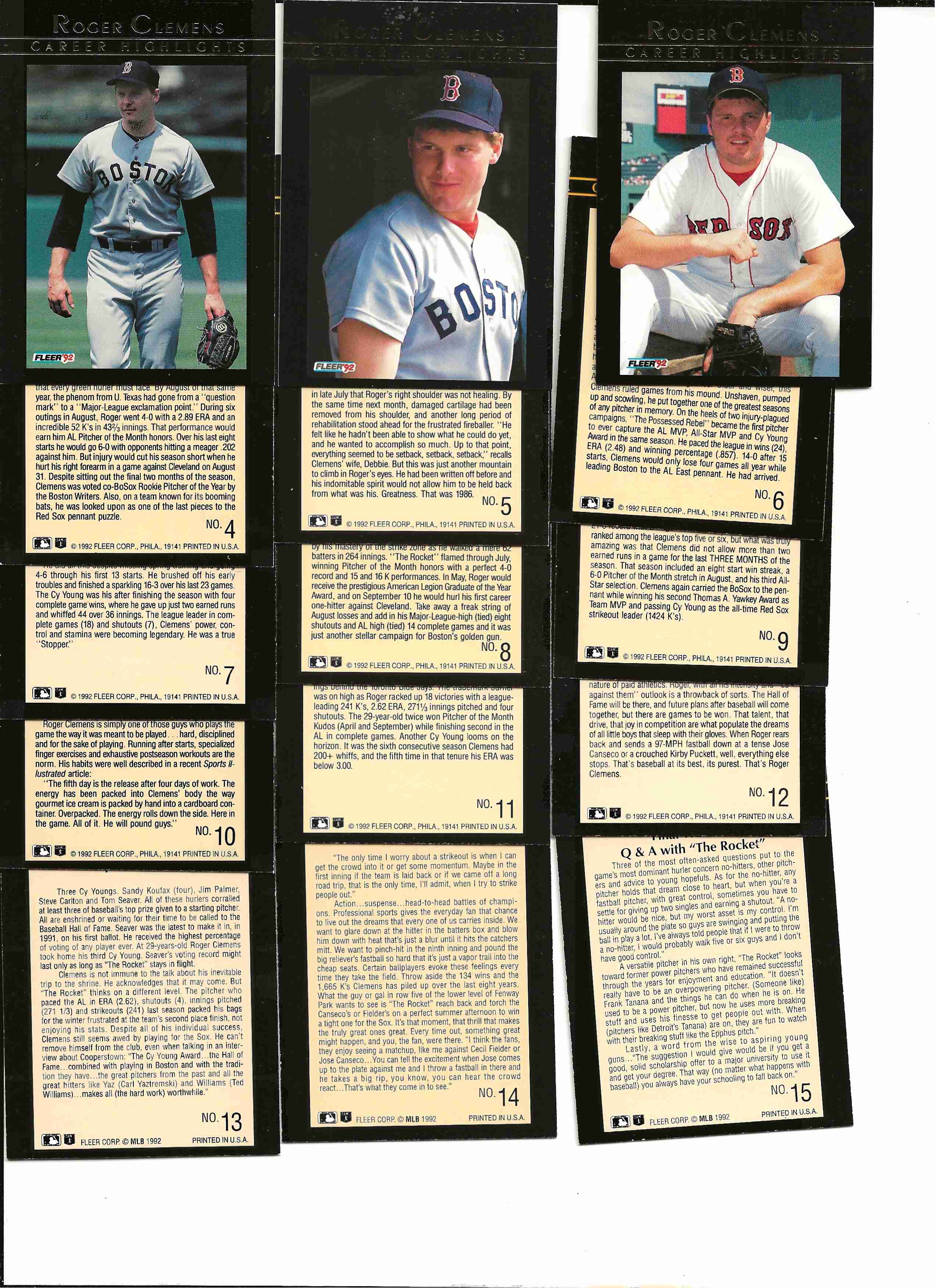 BB 1992 Fleer Roger Clemens Career Highlights 15-card set
