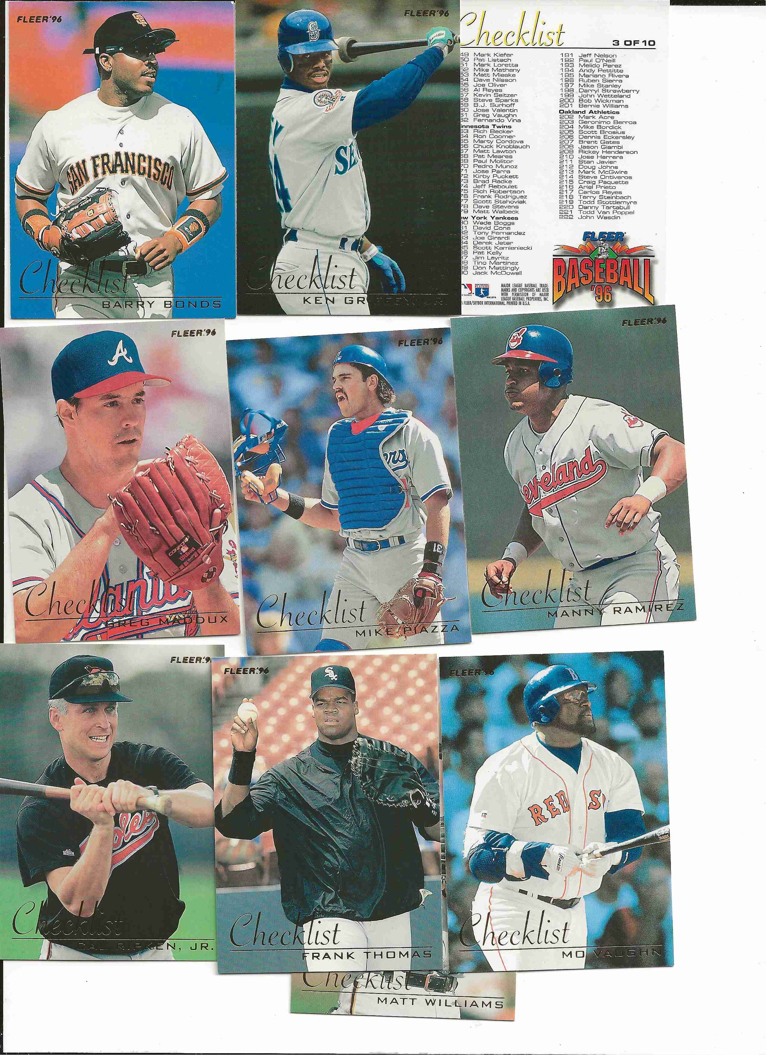 BB 1996 Fleer checklist 10-card set Ser 1 Ser 2 Griffey Bon