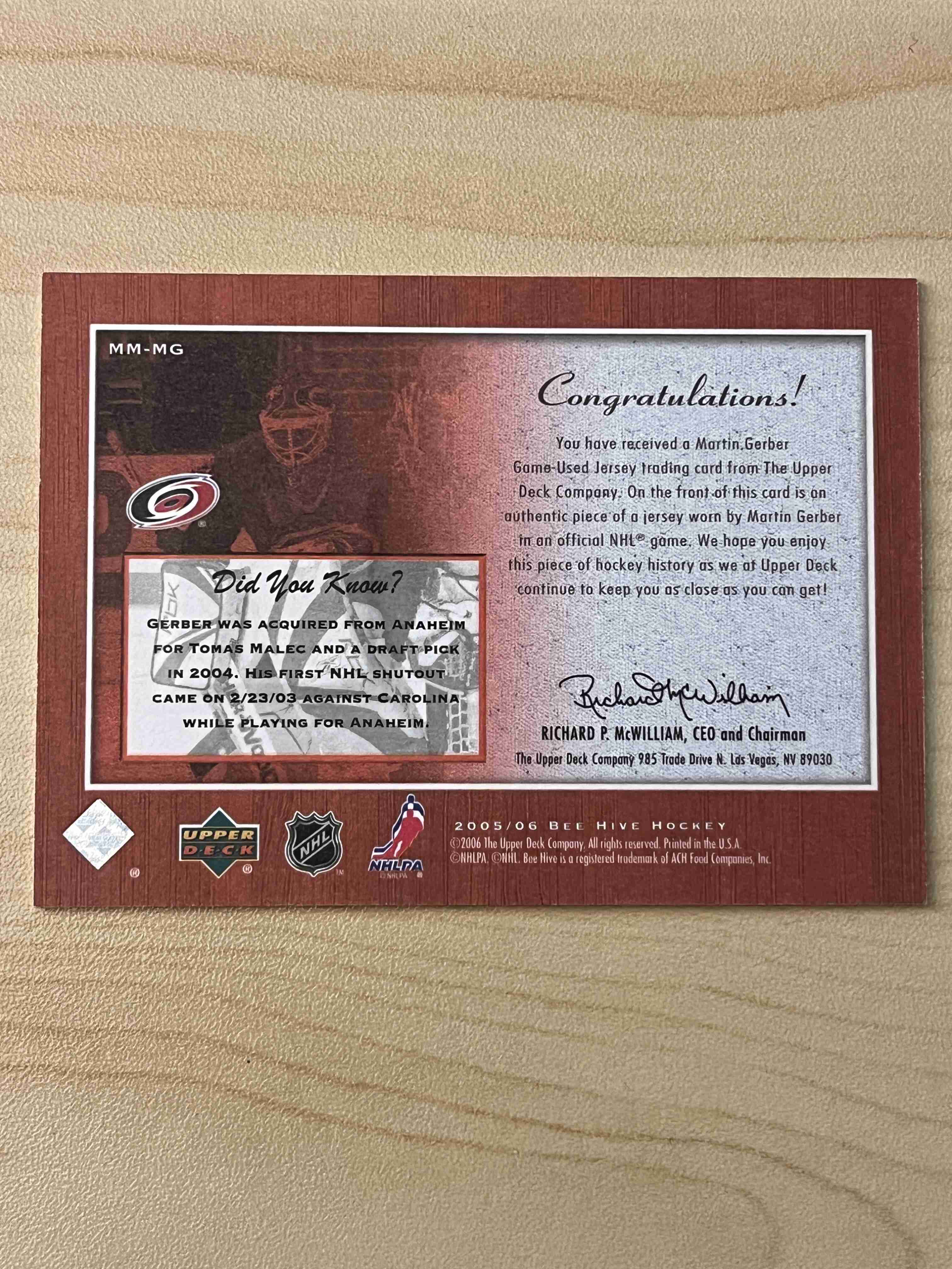 Martin Gerber 2005-06 Beehive Matted Materials Jersey