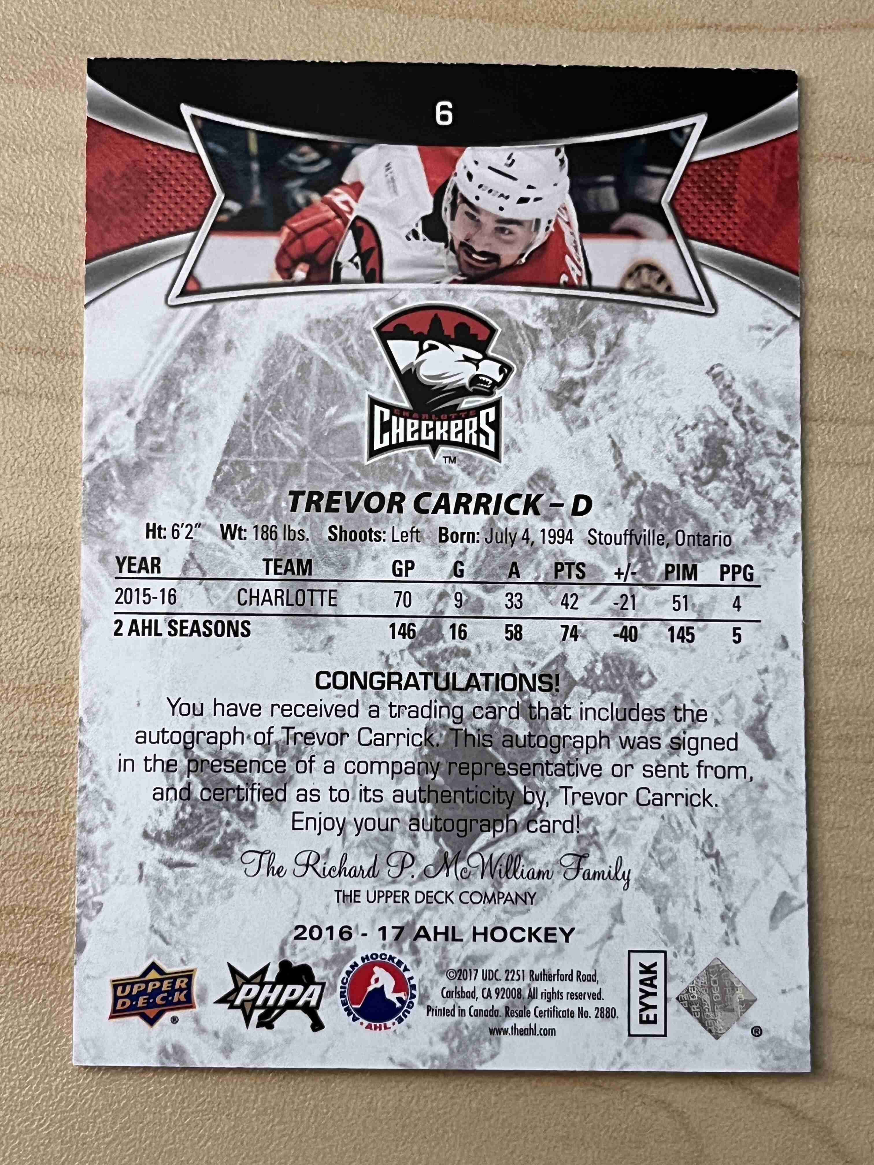 Trevor Carrick 2016-17 Upper Deck AHL Autograph #6