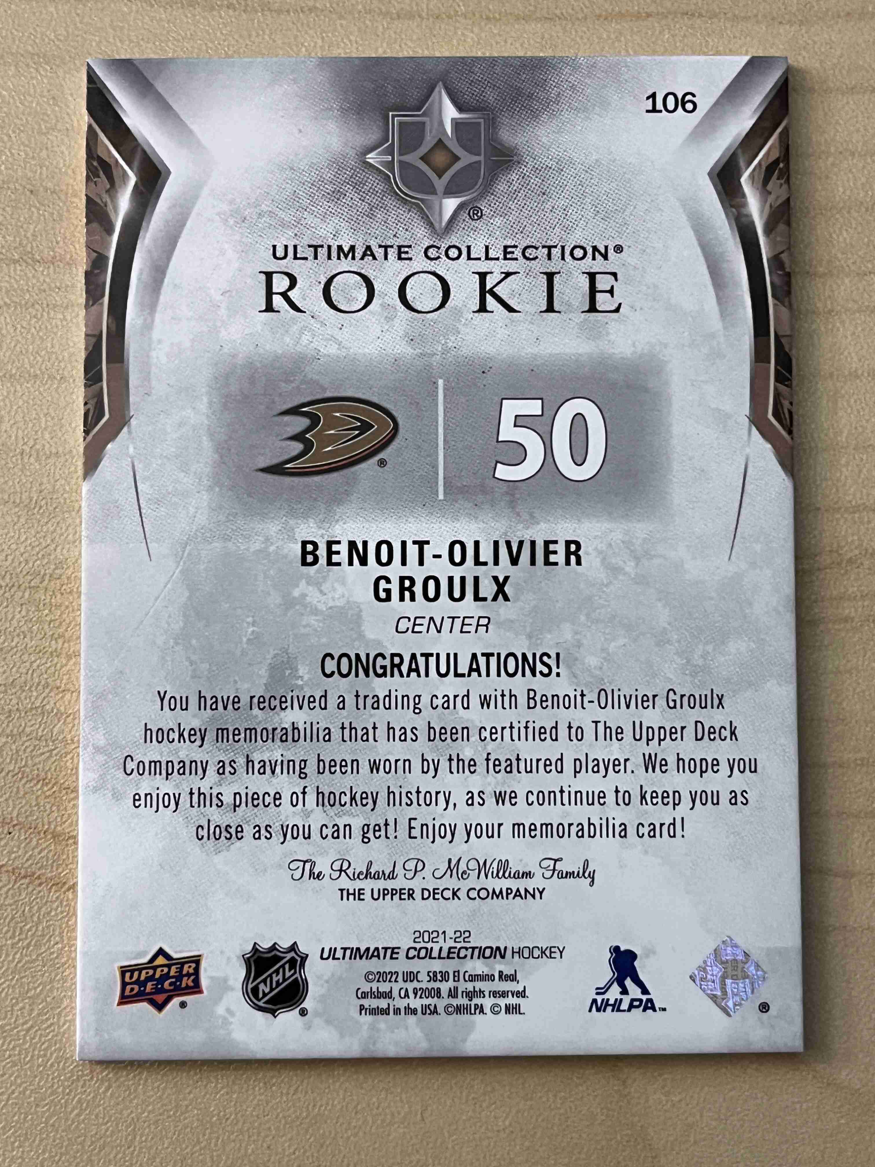 Benoit Olivier Proulx 2021-22 Ultimate Collection Jersey