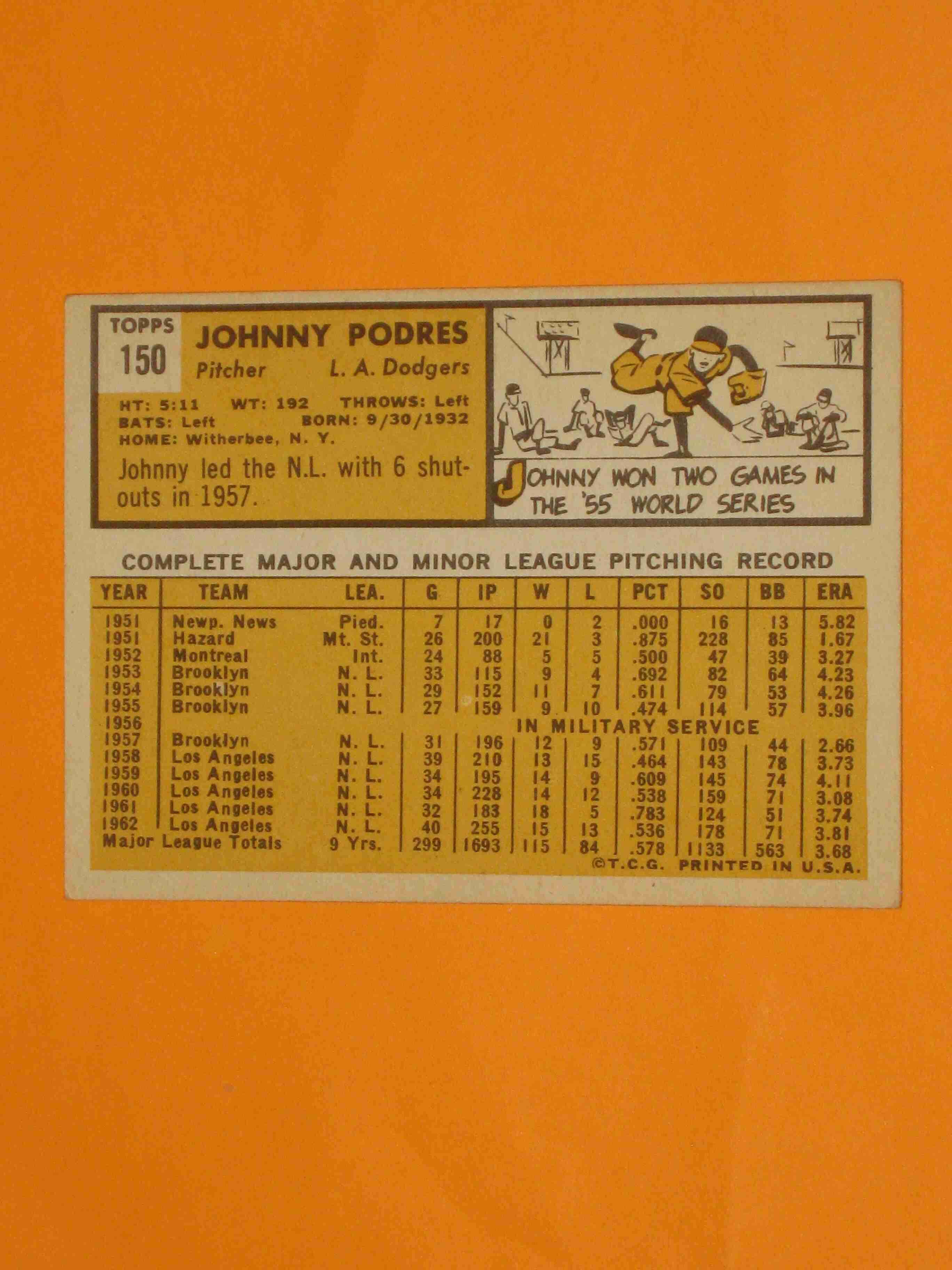 1963 Topps Johnny Podres #150 Los Angeles Dodgers