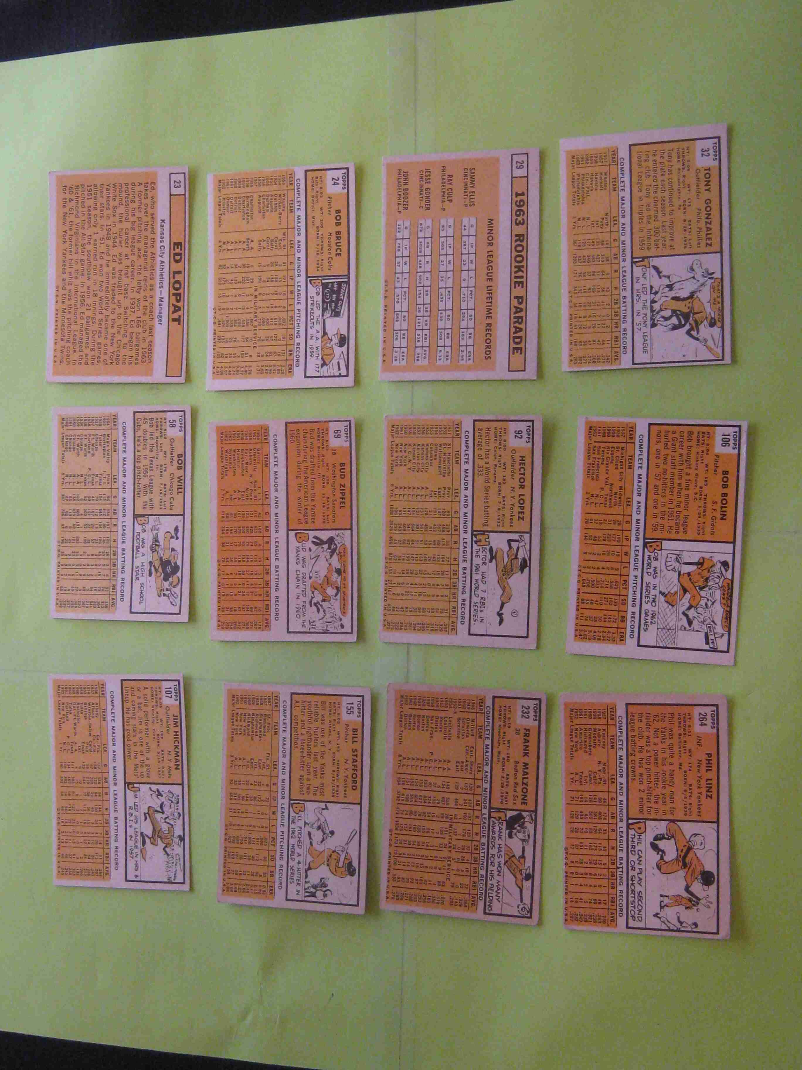 1963 Topps Lot of 12 different