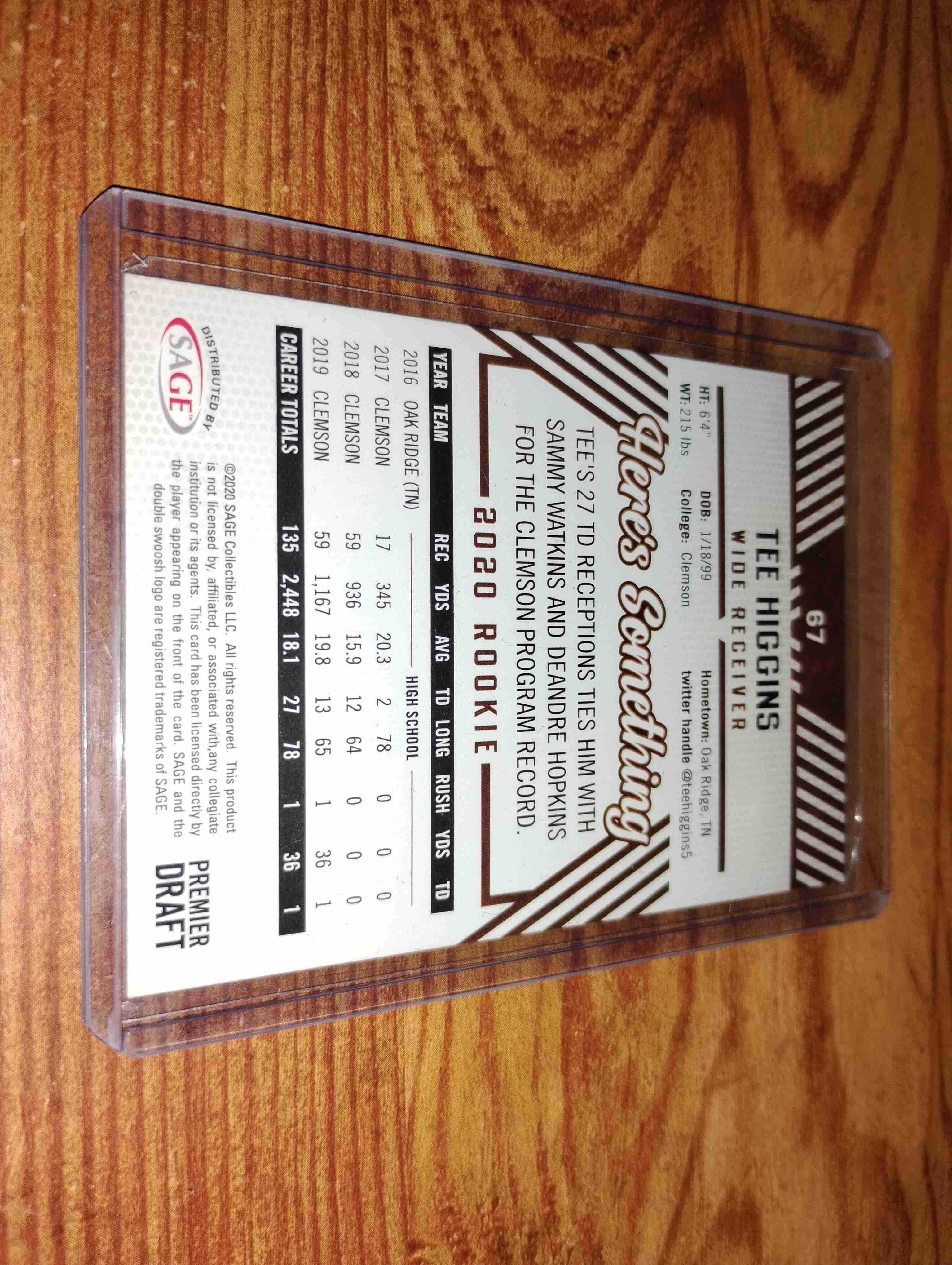 TEE HIIGINS 2020 SAGE HIT PREMIER DRAFT CARD #67