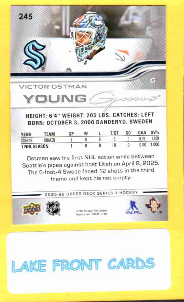 Victor Ostman #245 [Rookie] Young Guns 2025 Upper Deck