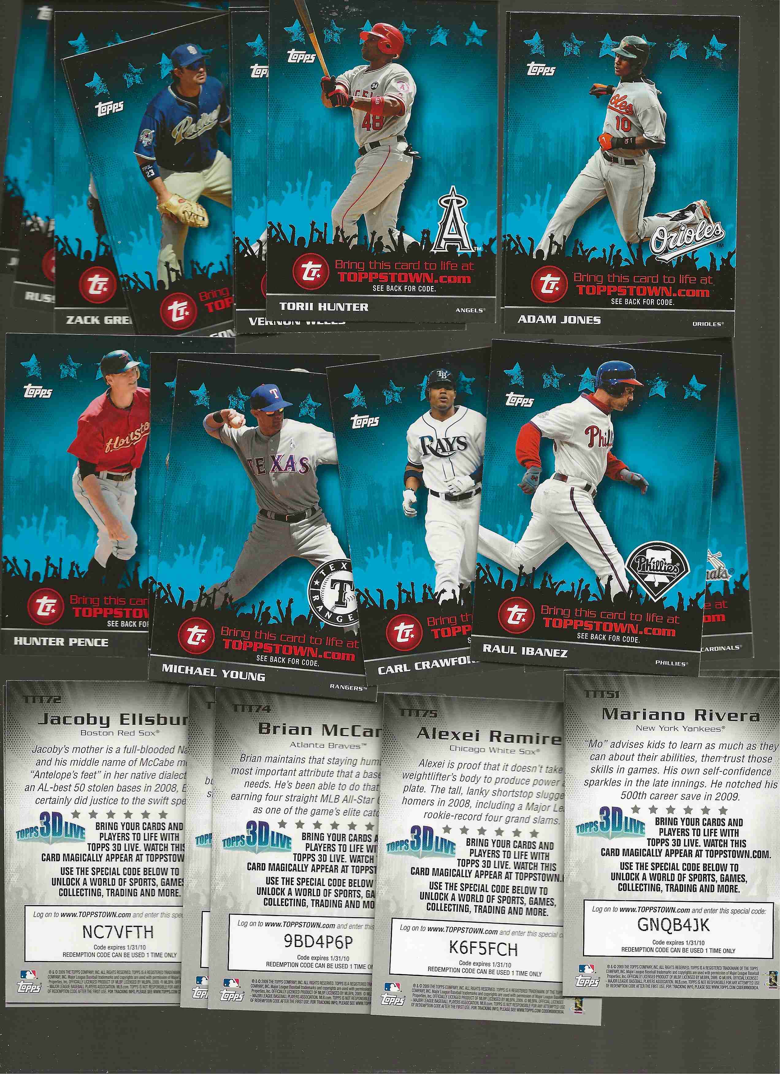 BB 2009 Topps Town redemption codes 25 card set #51-75