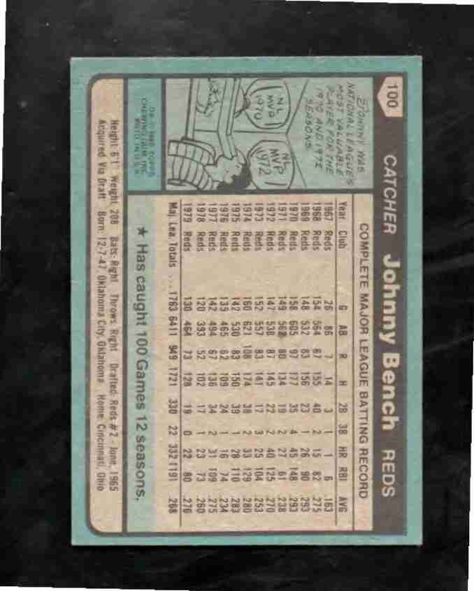 1980 Topps # 100 HOFer JOHNNY BENCH Reds