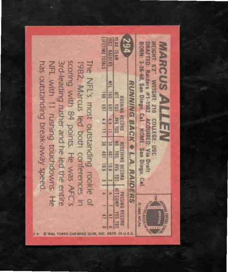 1983 Topps # 294 HOFer MARCUS ALLEN Raiders