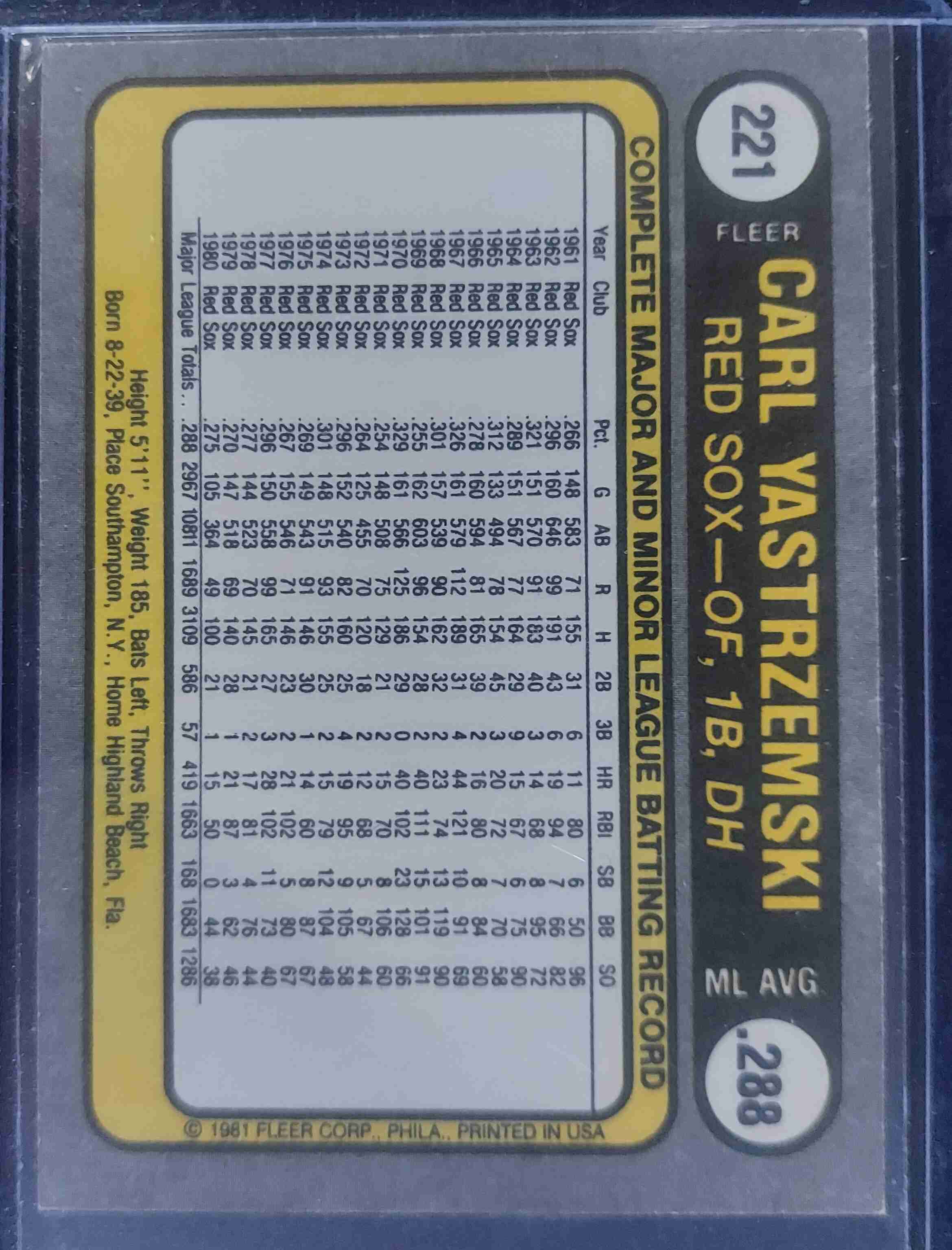 1981 Fleer # 221 Carl Yastrzemski Boston Red Sox HOF