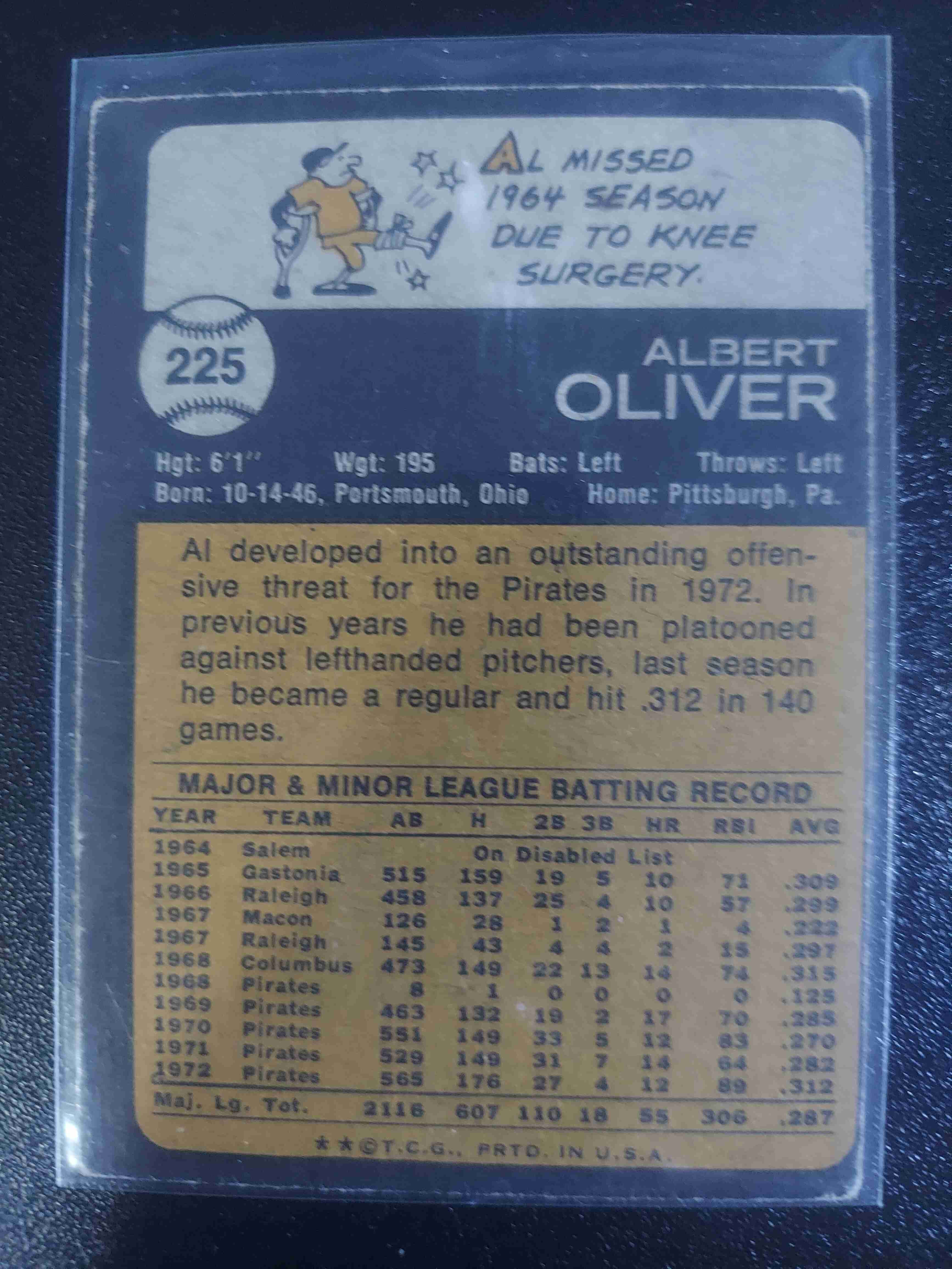 1973 Topps # 225 Al Oliver Pittsburgh Pirates
