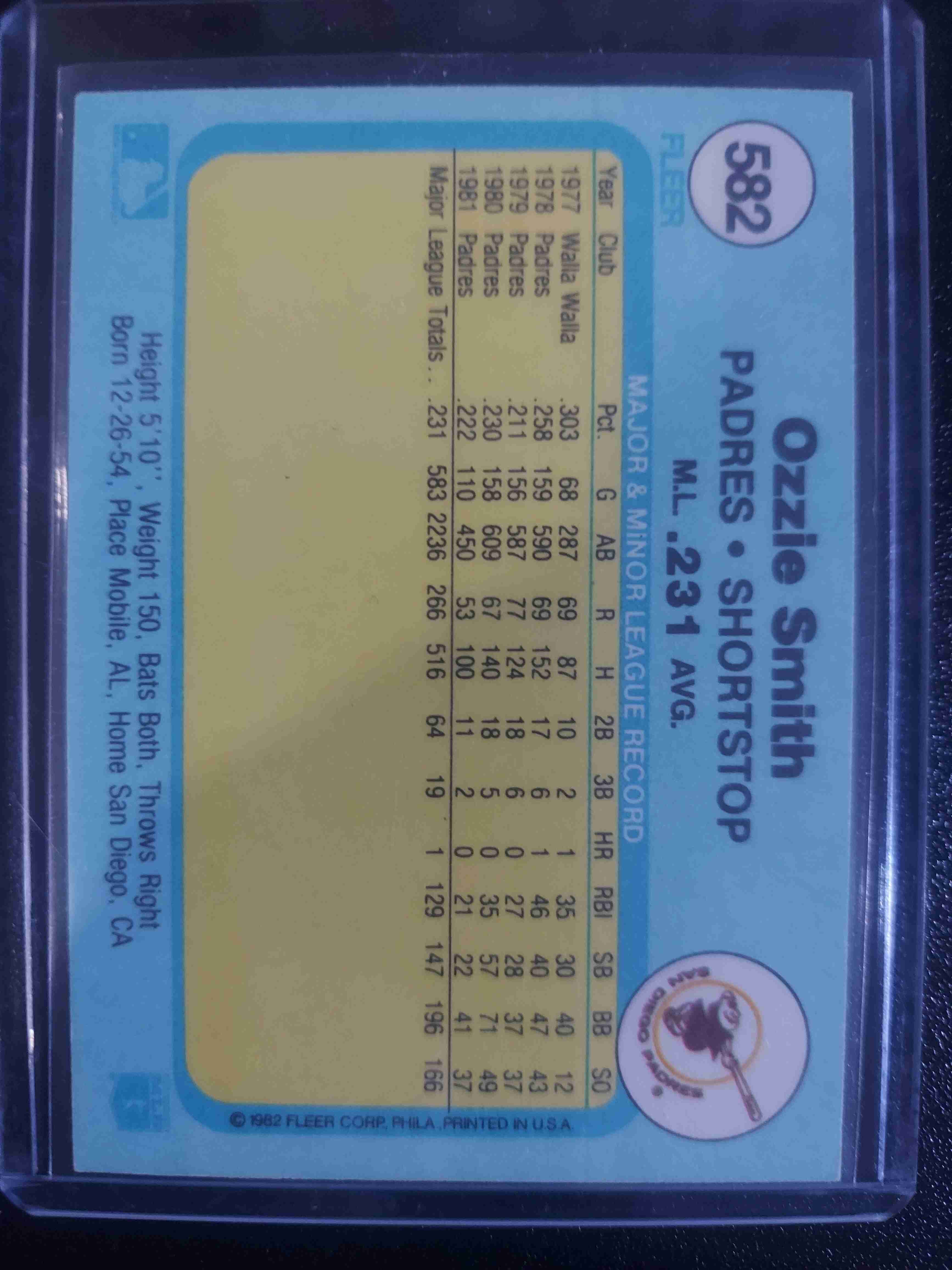 1982 Fleer # 582 Ozzie Smith San Diego Padres HOF
