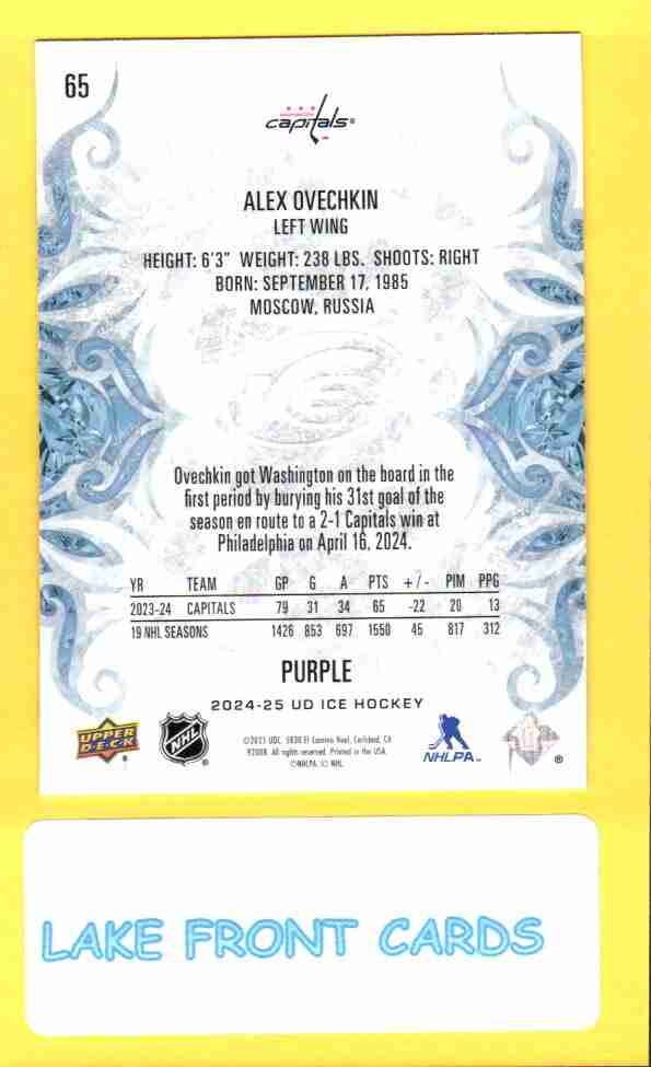 Alex Ovechkin [Purple] #65 2024 Upper Deck Ice