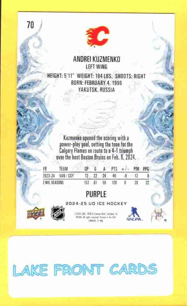 Andrei Kuzmenko [Purple] #70 2024 Upper Deck Ice