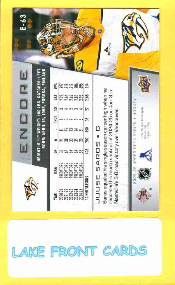 Juuse Saros #E-63 2025 Upper Deck Encore