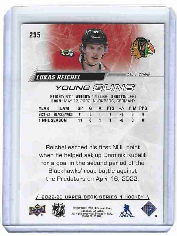 2022/23 UD 1 #235 LUKAS REICHEL YOUNG GUNS