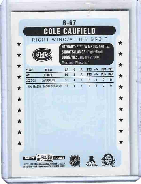 2021/22 OPC PLATINUM COLE CAUFIELD RETRO ROOKIE R-67