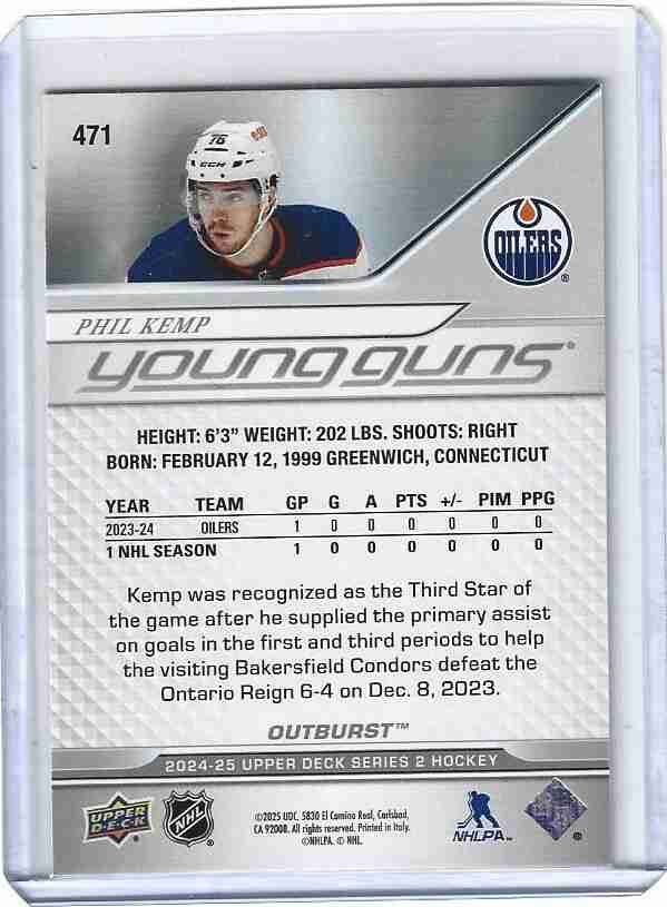 2024/25 UD 2 #471 PHIL KEMP YOUNG GUNS OUTBURST