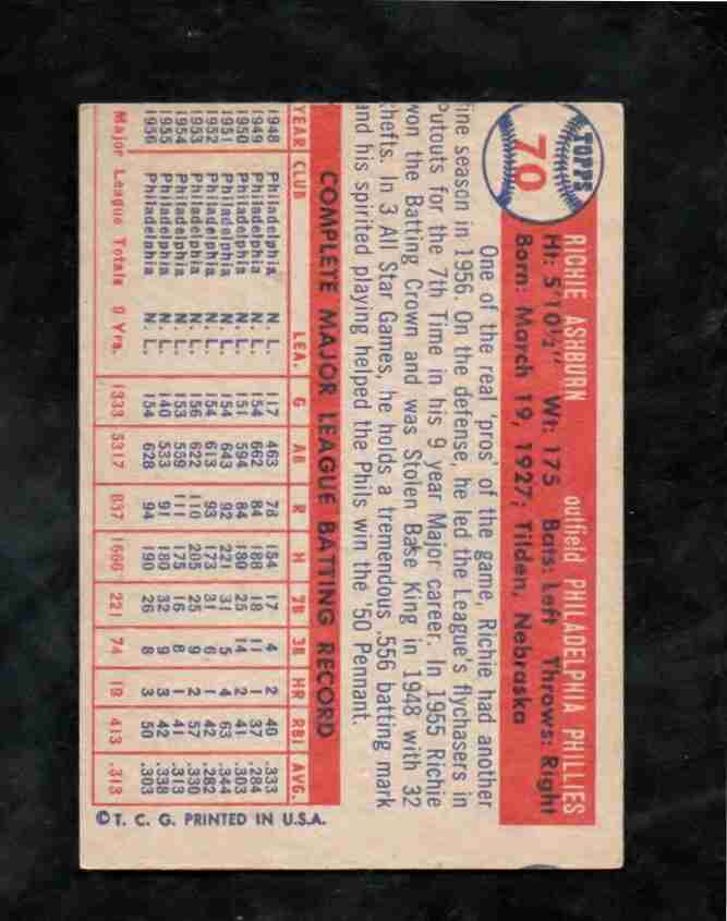 1957 Topps # 70 RICHIE ASHBURN Phillies