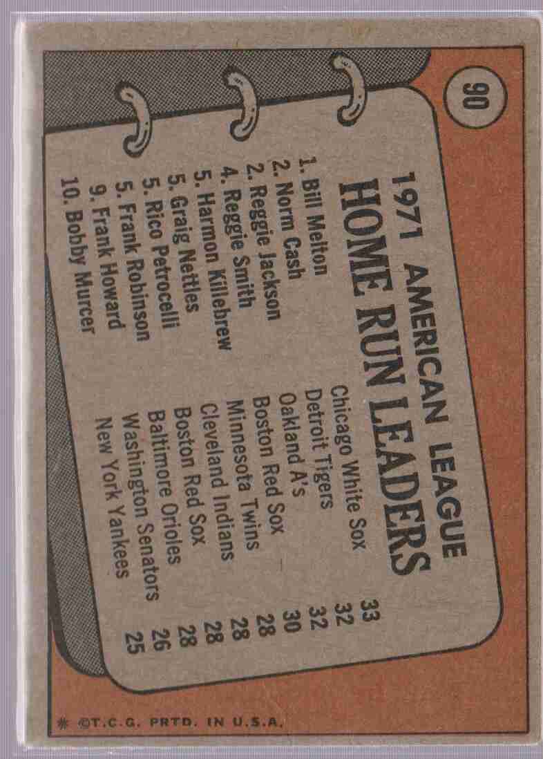 1972 Topps '71 Home Run Leaders Melton/Cash/Jackson