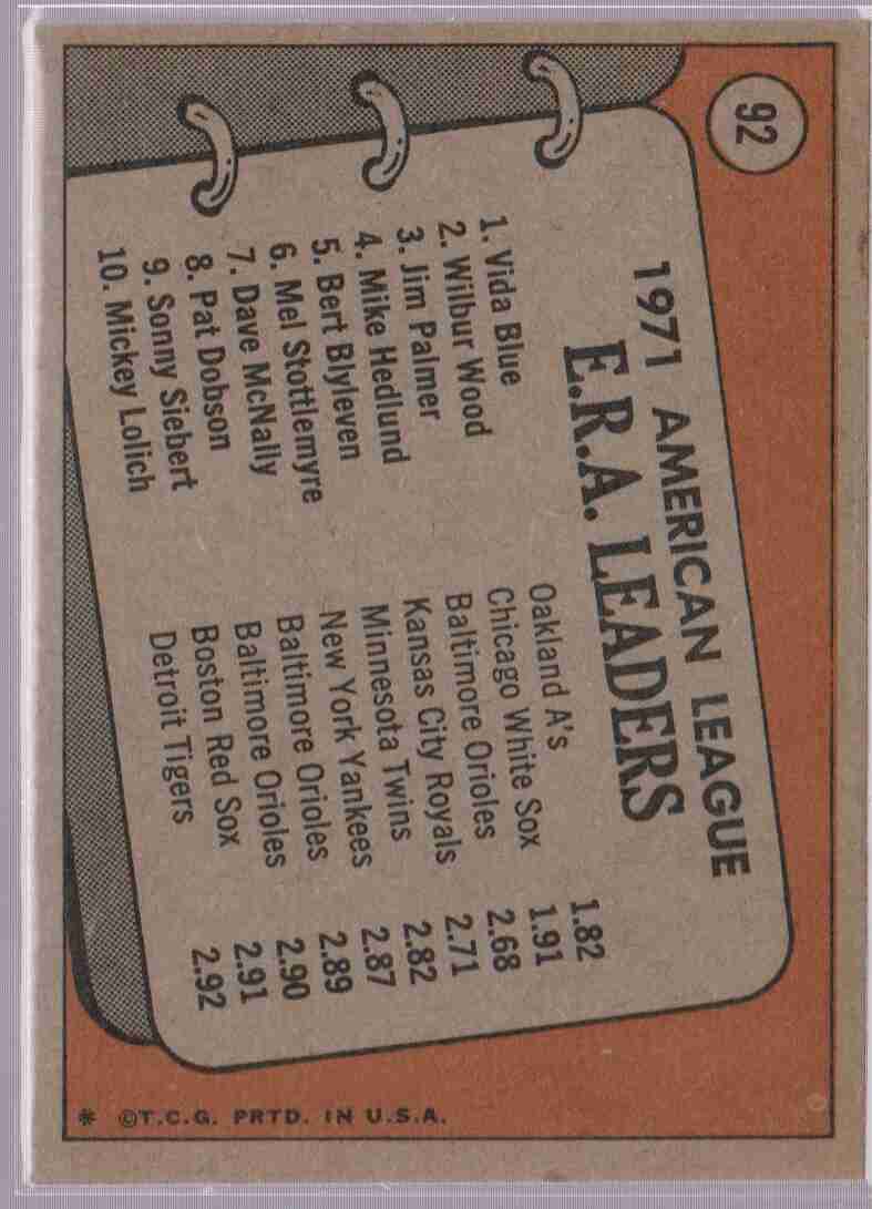 1972 Topps '71 AL ERA Leaders Blue/Wood/Palmer