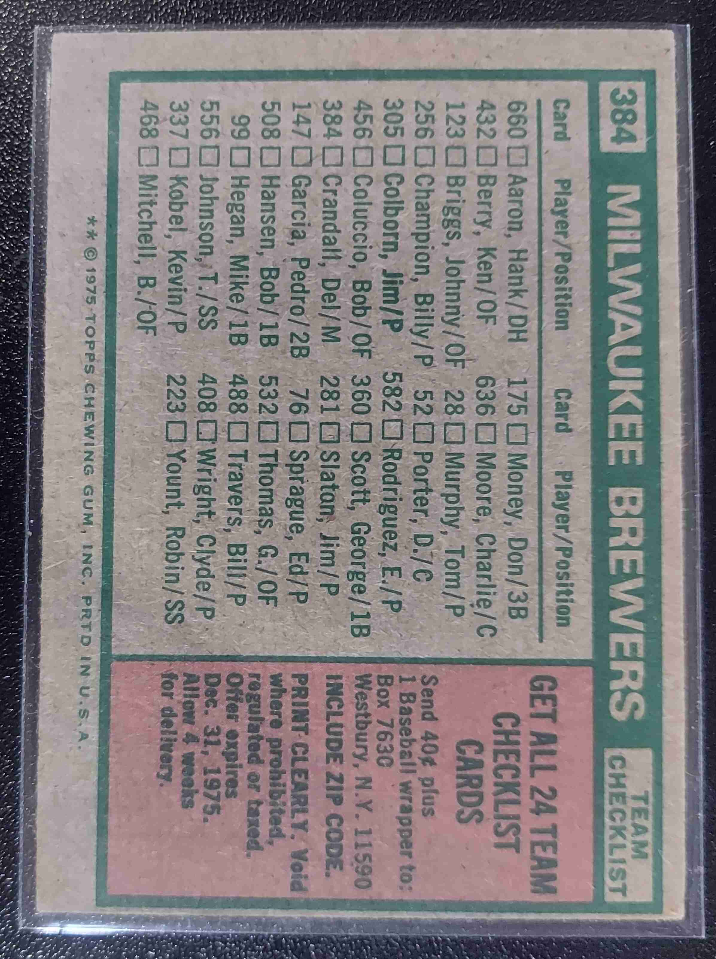 1975 Topps # 384 Milwaukee Brewers Unmarked Team Card
