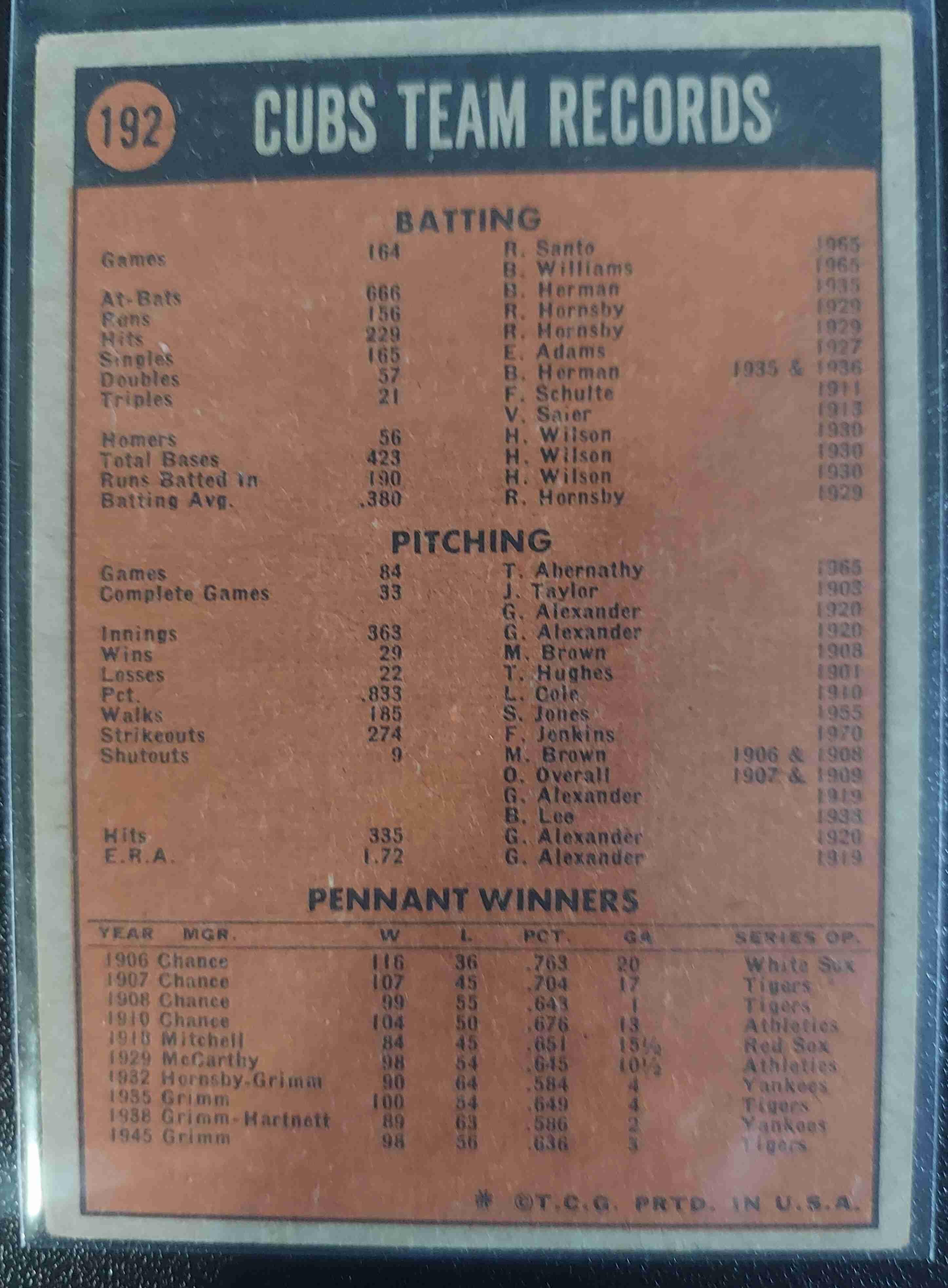 1972 Topps # 192 Chicago Cubs Team Card. Headshots!!