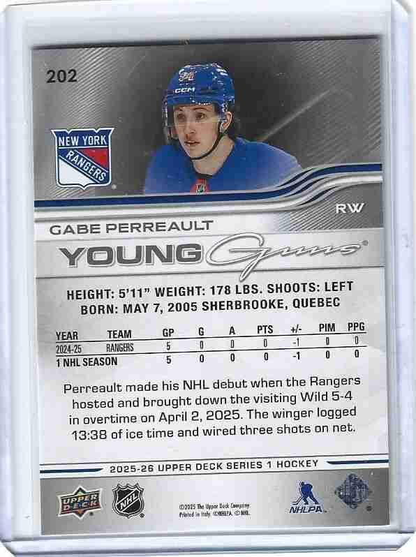 2025/26 UD 1 #202 GABE PERREAULT YOUNG GUNS