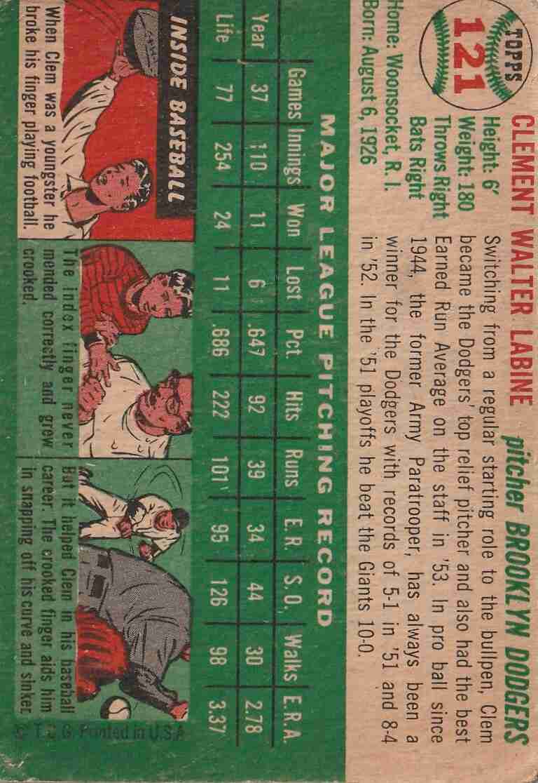 1954 Topps #121 Clem Labine Brooklyn Dodgers